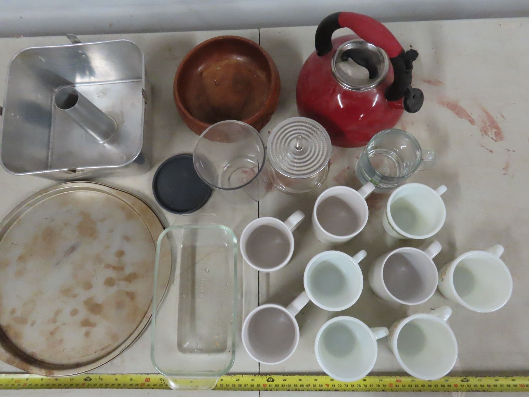 Lot of Kitchen Supplies (Includes kettle and mugs