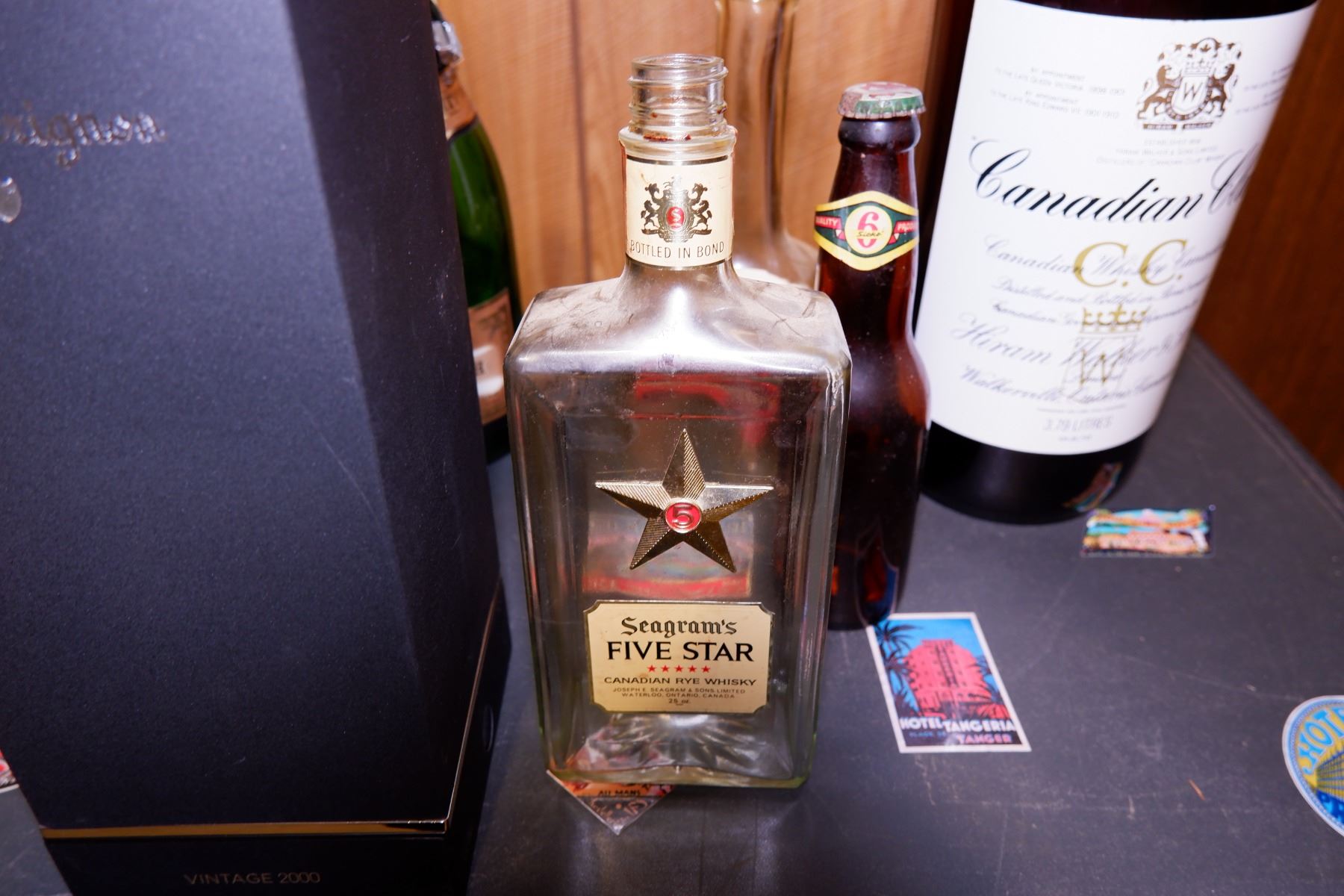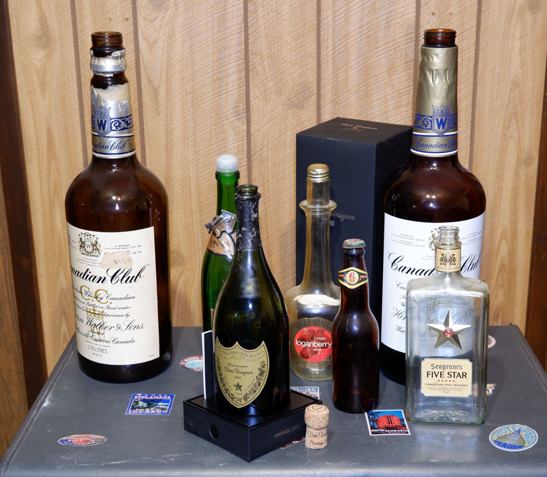 Lot of Liquor Bottles: Vintage 2000 Dom Perignon, 5 Star, Texas Mickey's, etc.