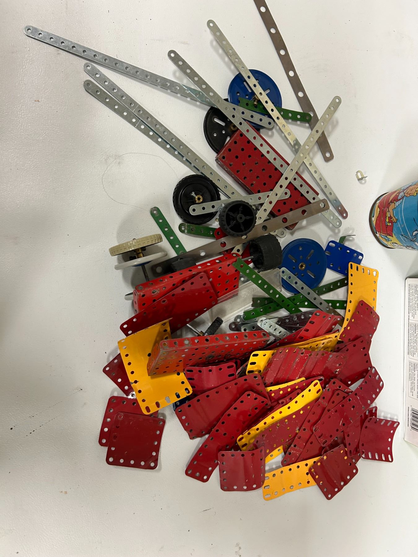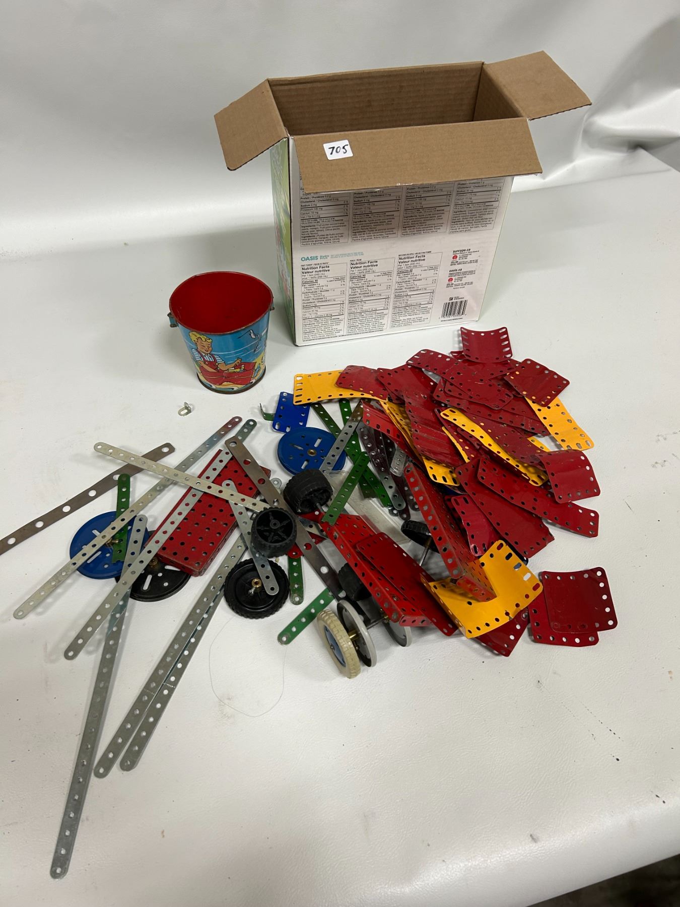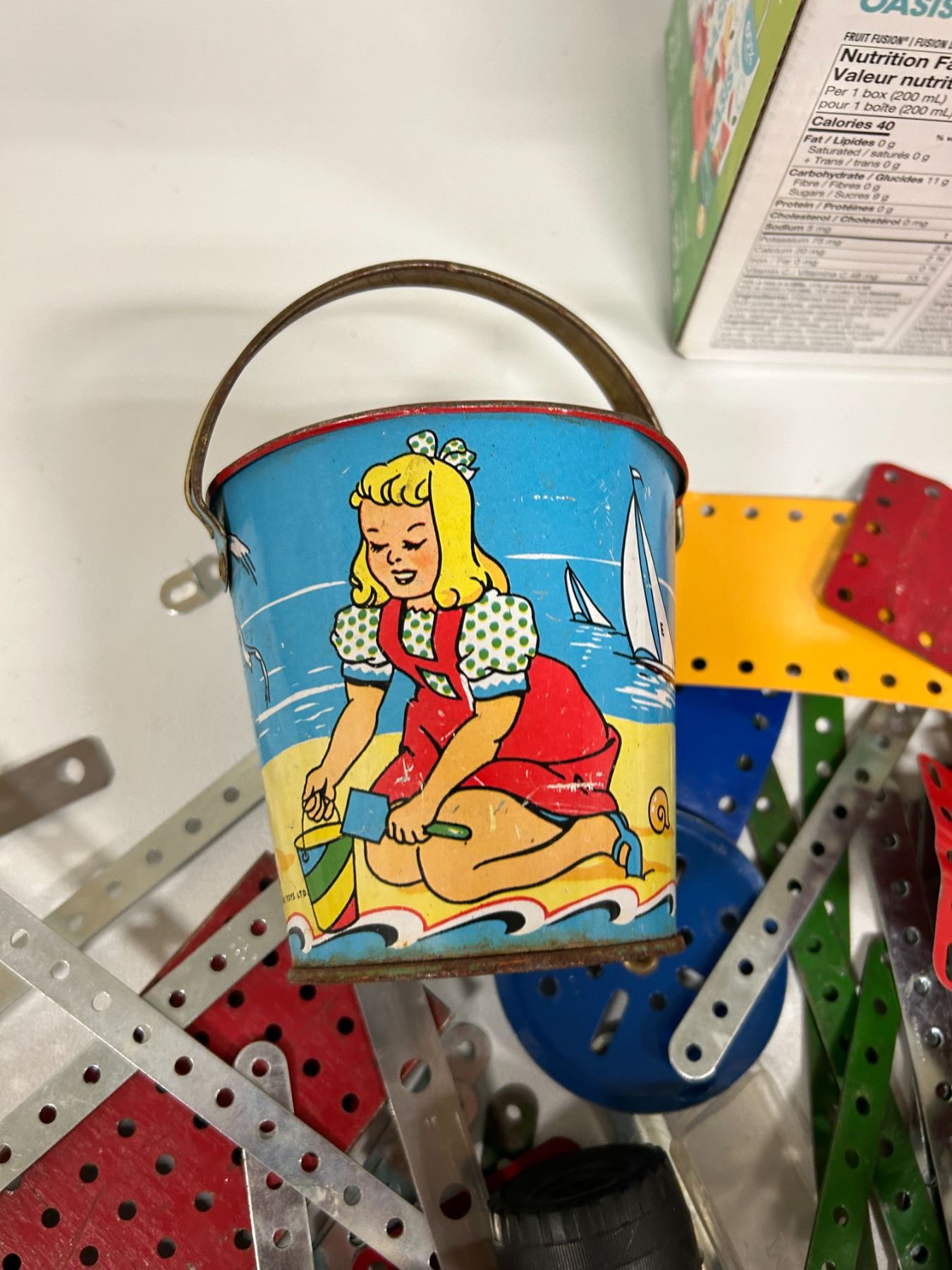 Lot of Mecanno parts and tin sandpail Eagle toys Ltd