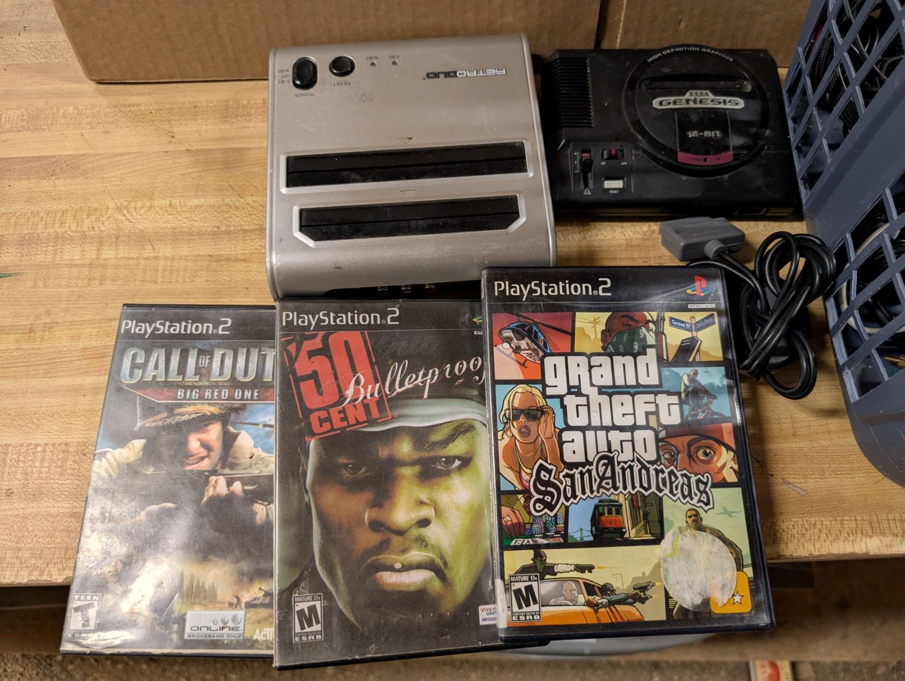 Lot of Misc. Cords, Bootleg Consoles, and (3) PS2 Games