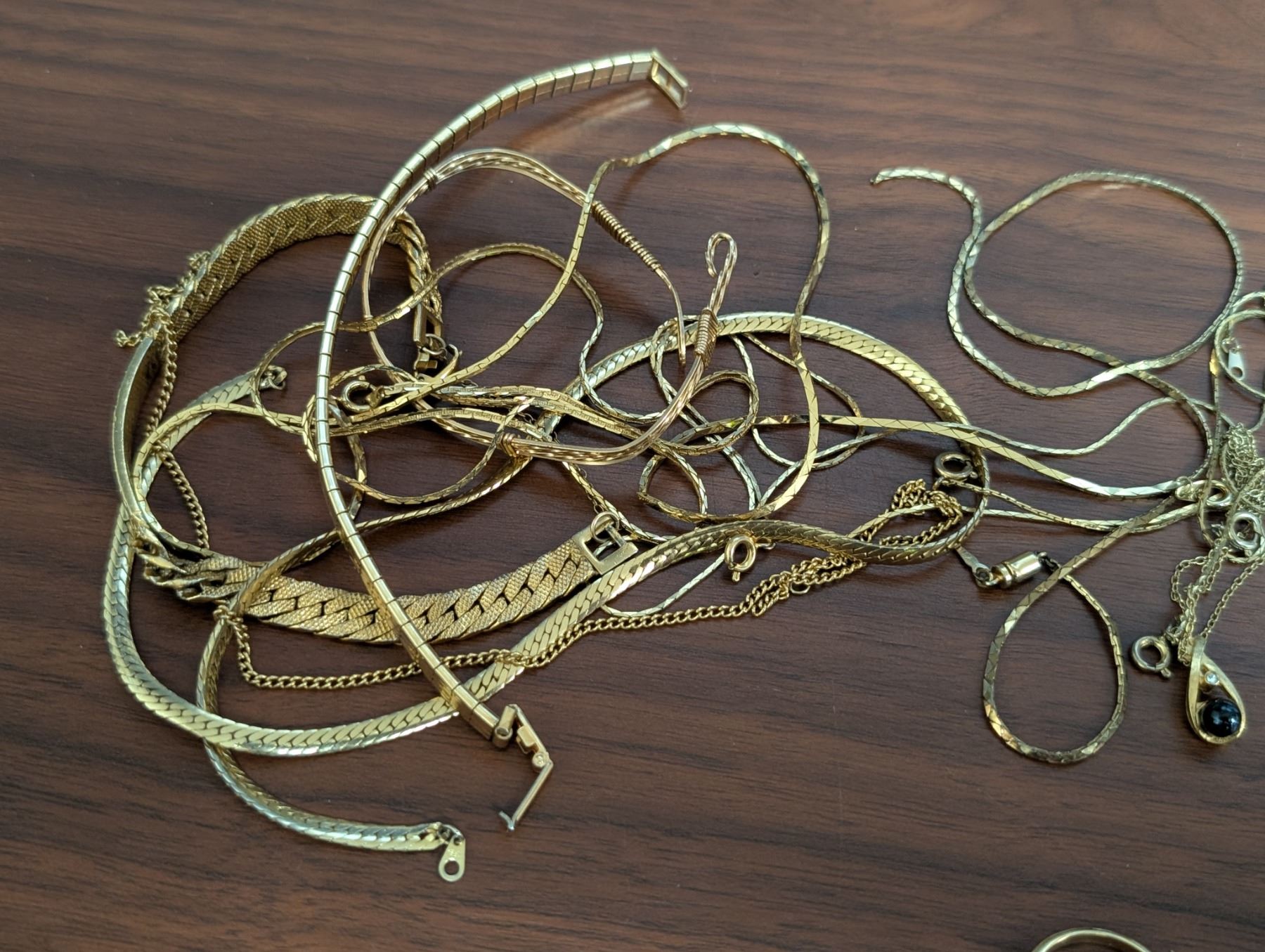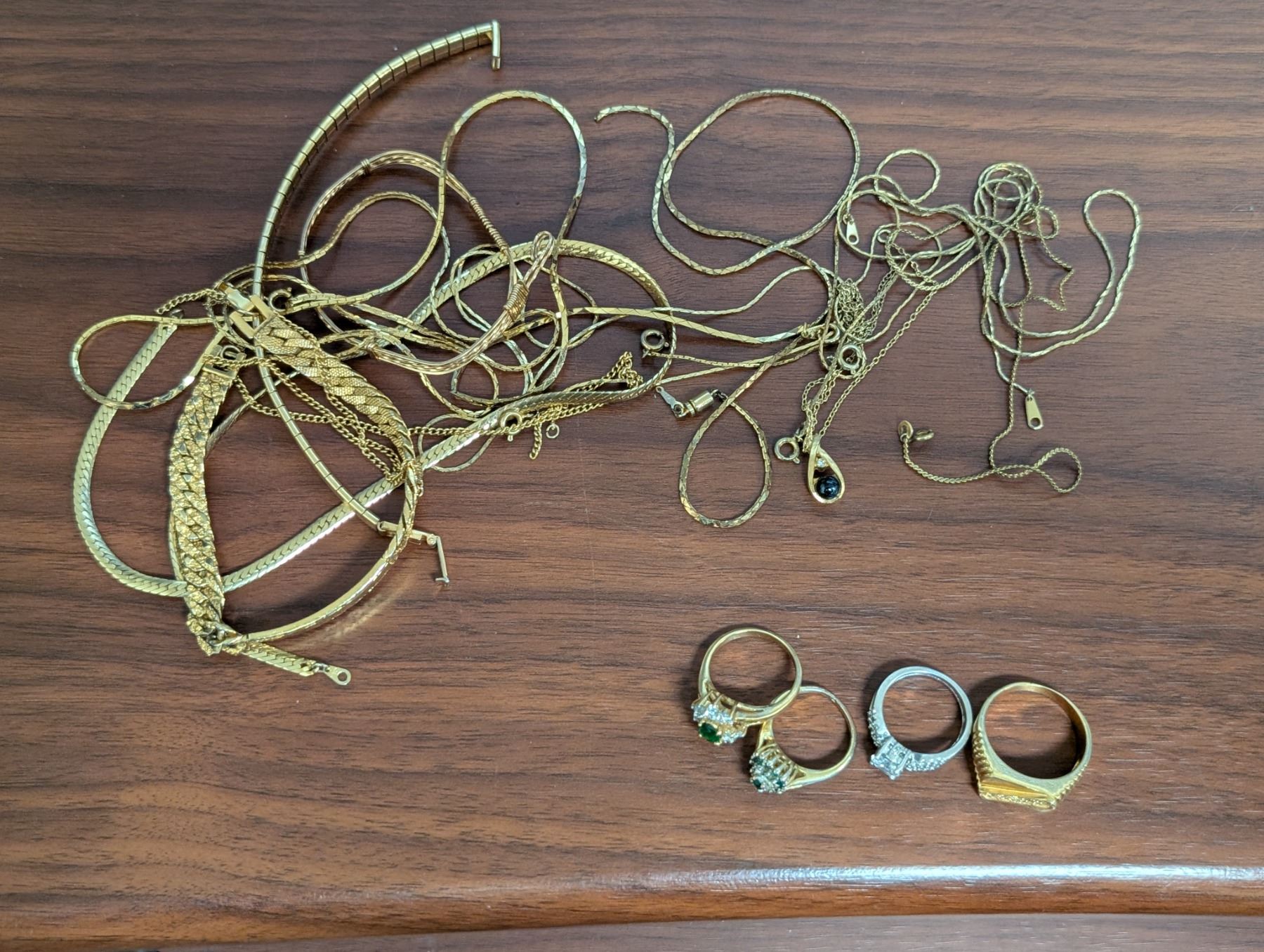 Lot of Misc. Gold Coloured Jewelry And Etc. (Bracelets, Necklaces, Rings)