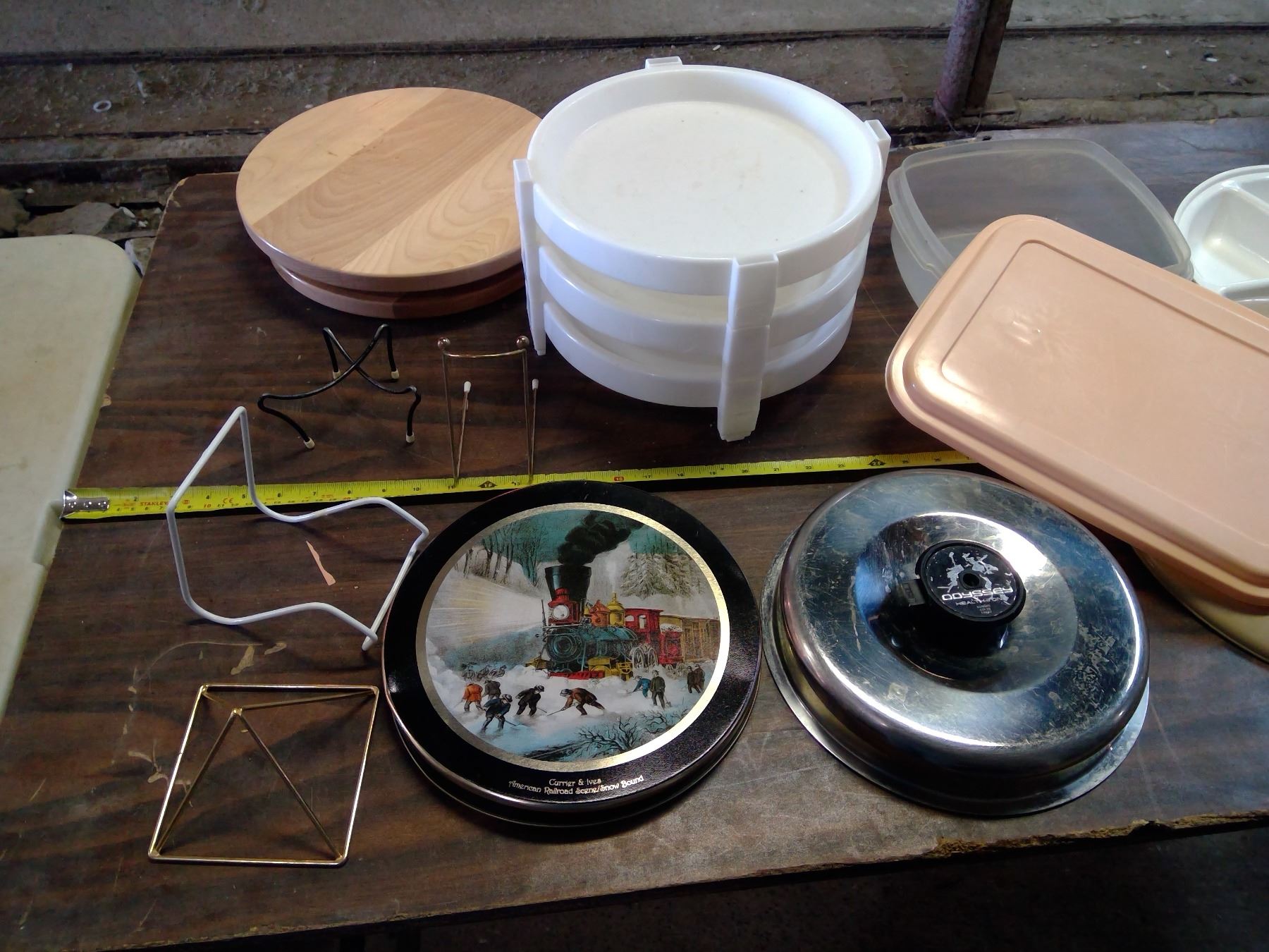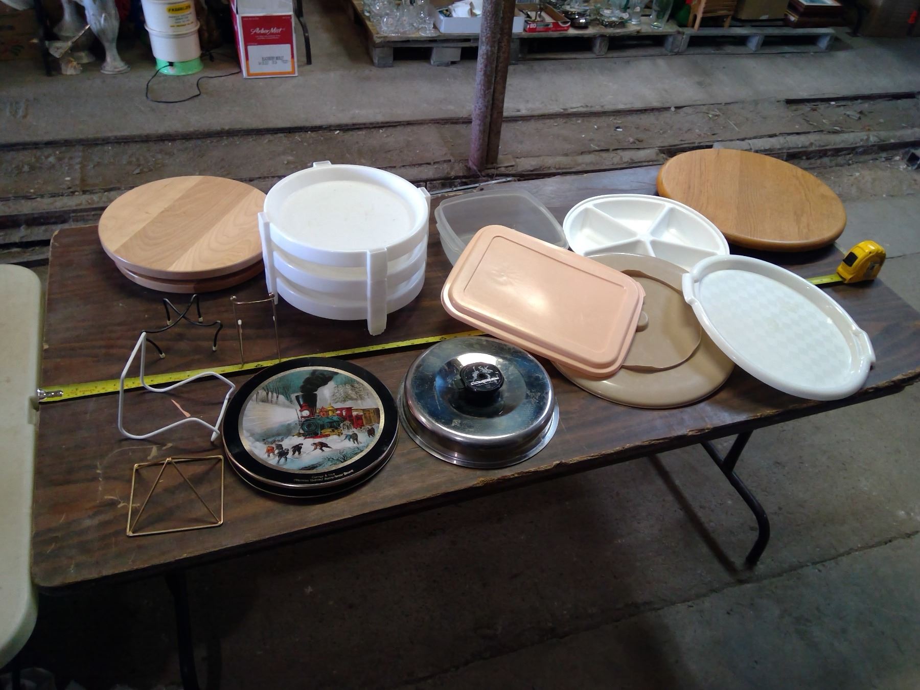 Lot of Misc. Items - Assorted Lids and 2 Lazy Susans