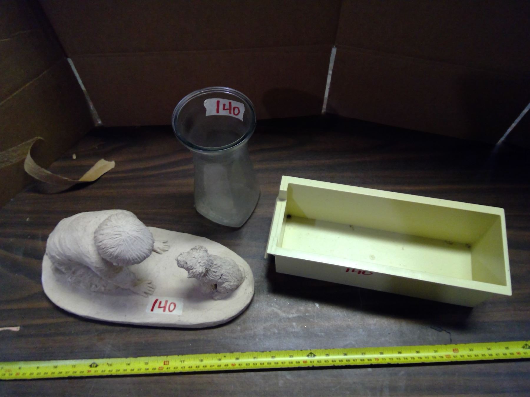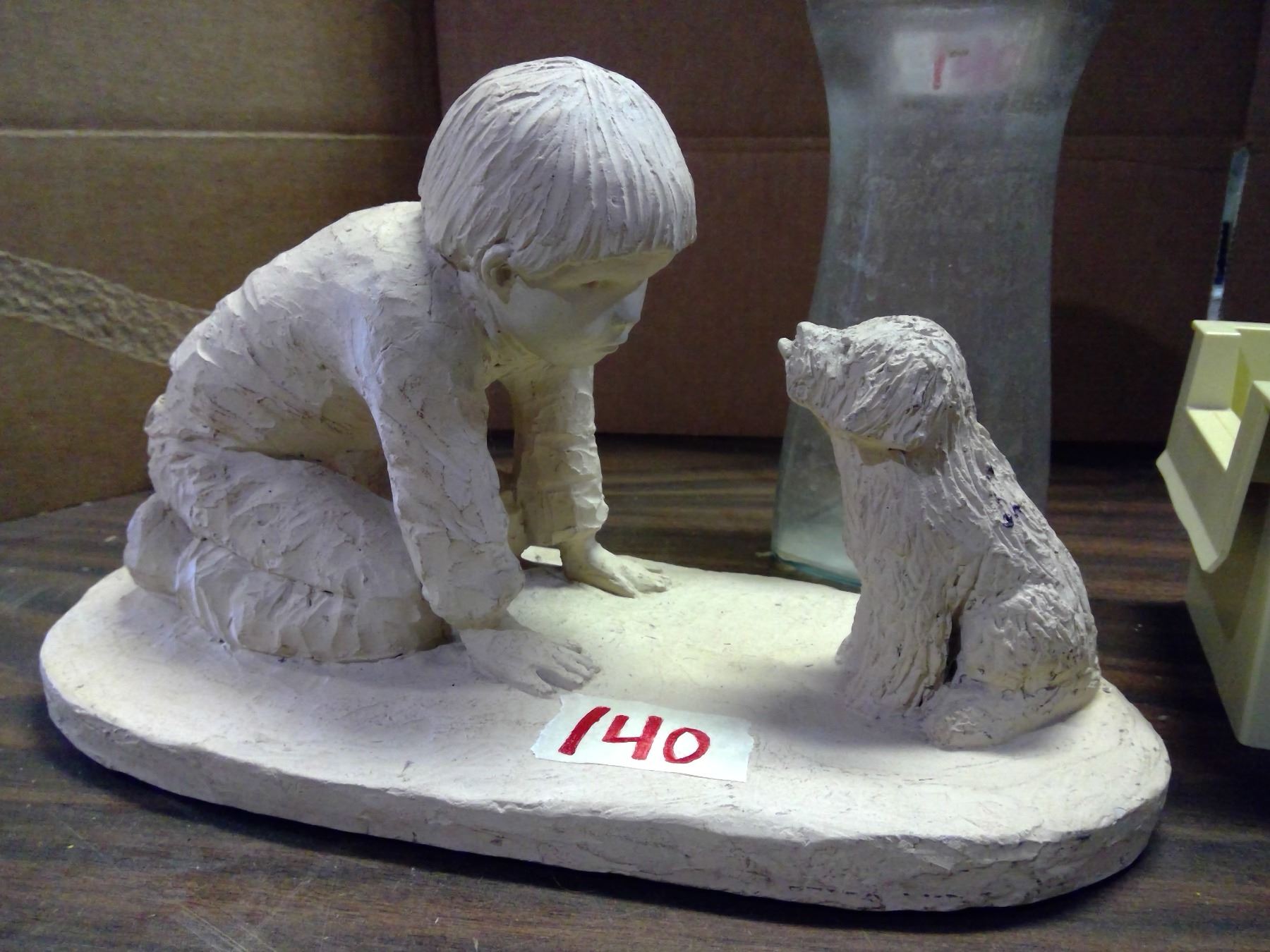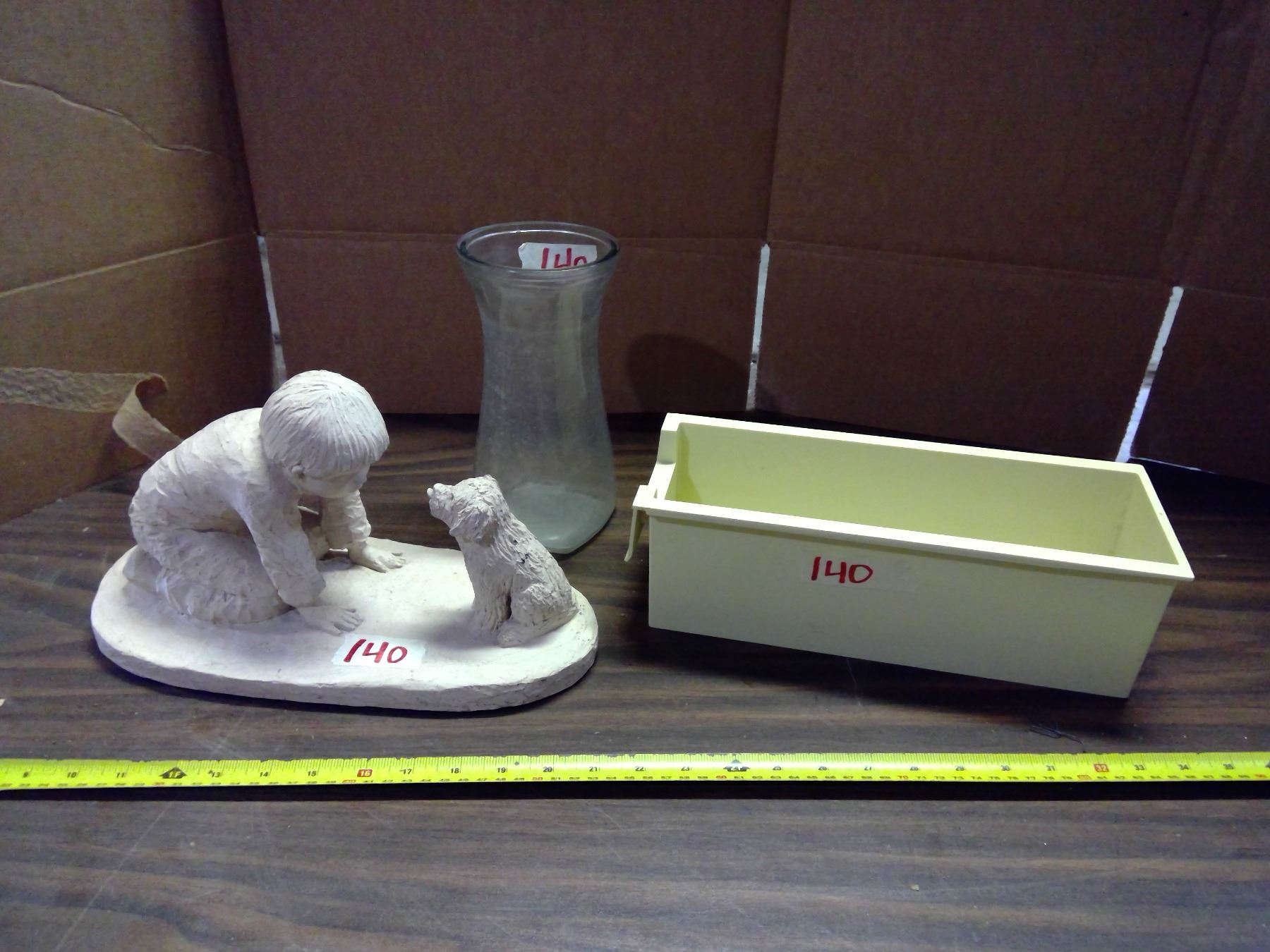 Lot of Misc. Items - Boy and Dog Ornament, Vase, and Plastic Container