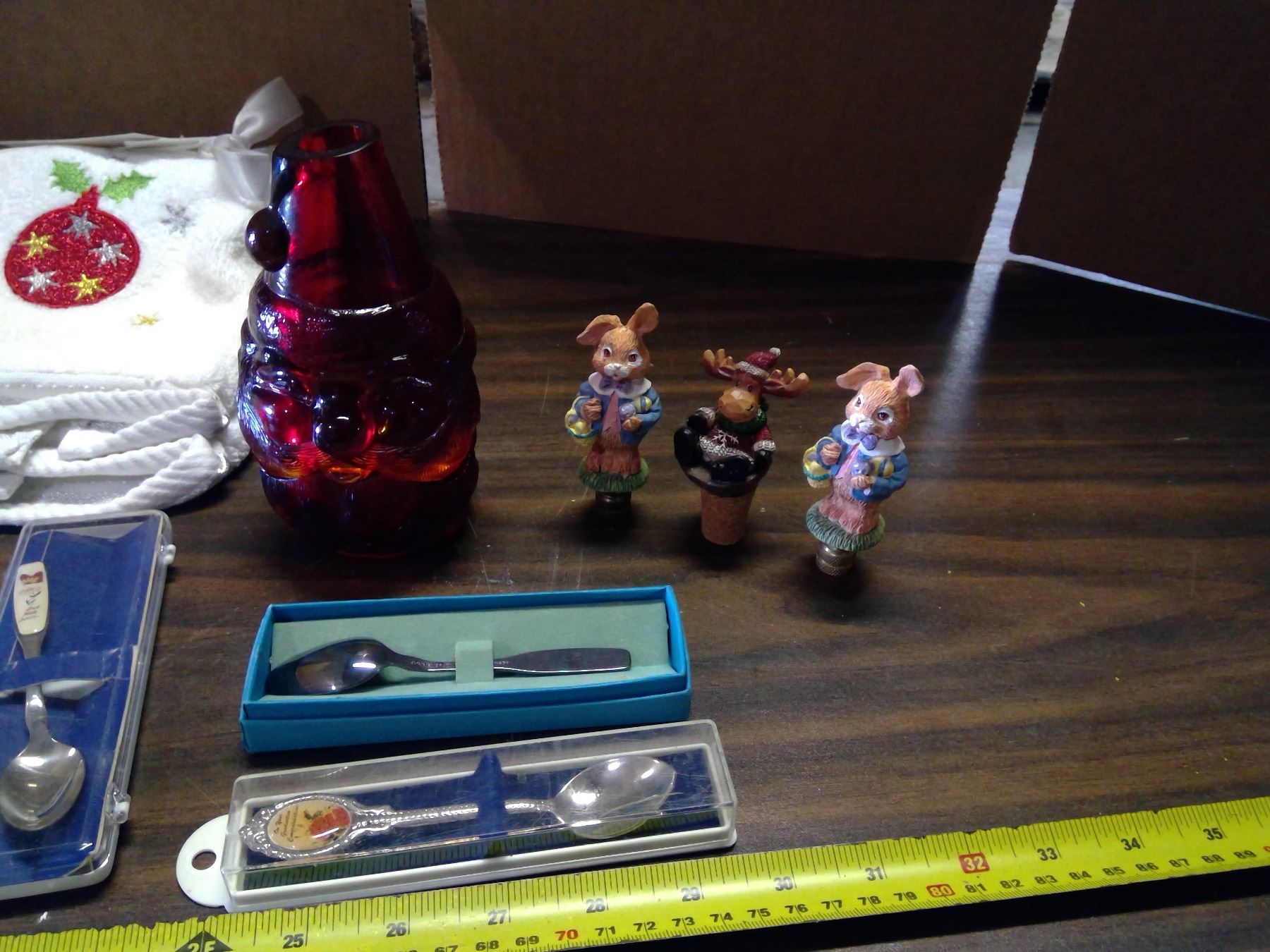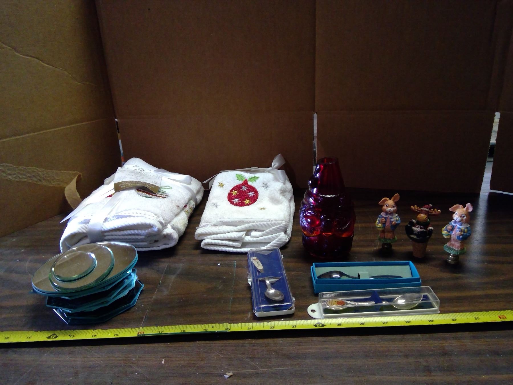 Lot of Misc. Items - Christmas Hand Towels, Small Mirrors, Collector Spoons, etc.