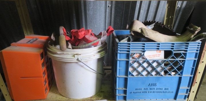 Lot of Misc. Items Including Saw Blades and Shop Organizer