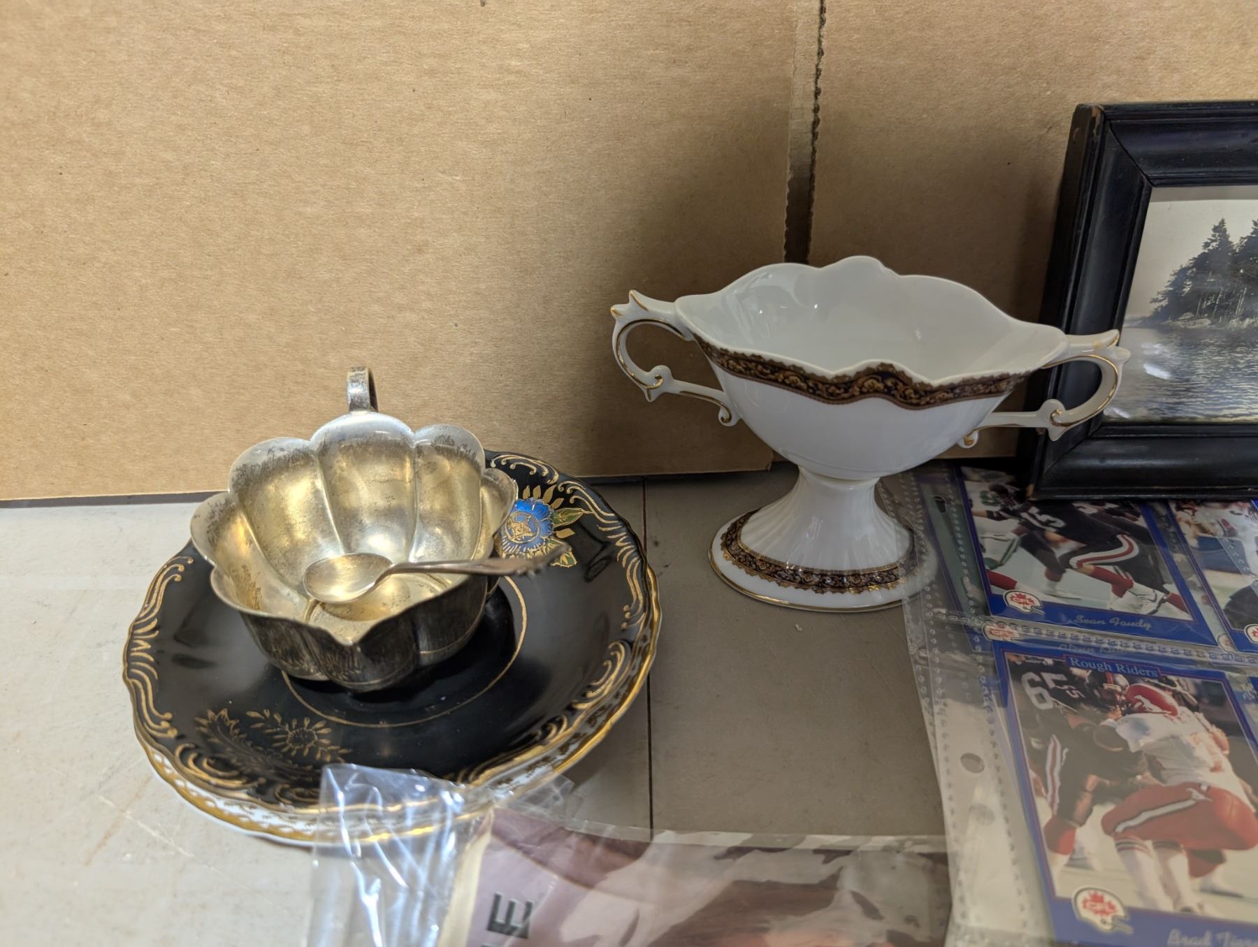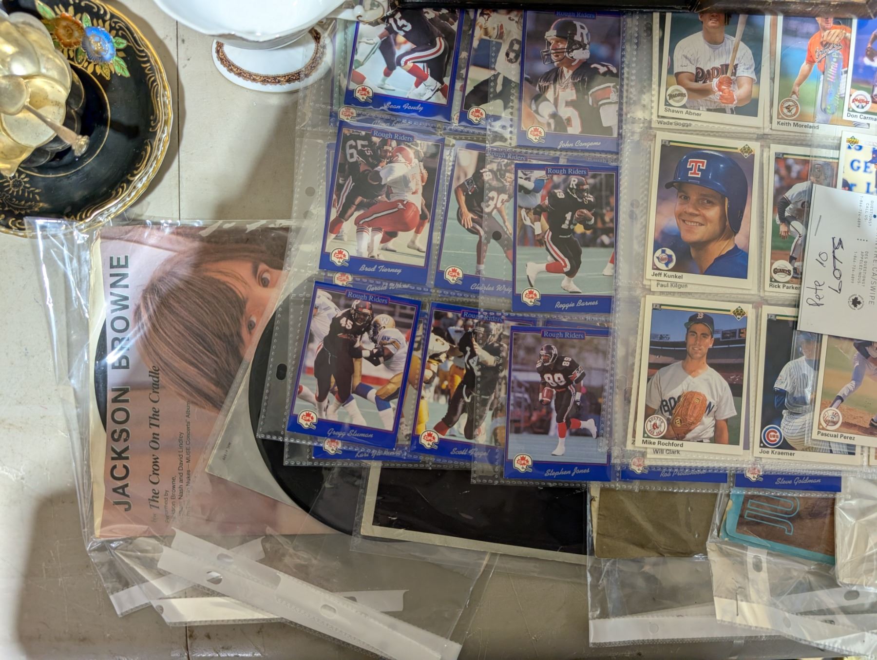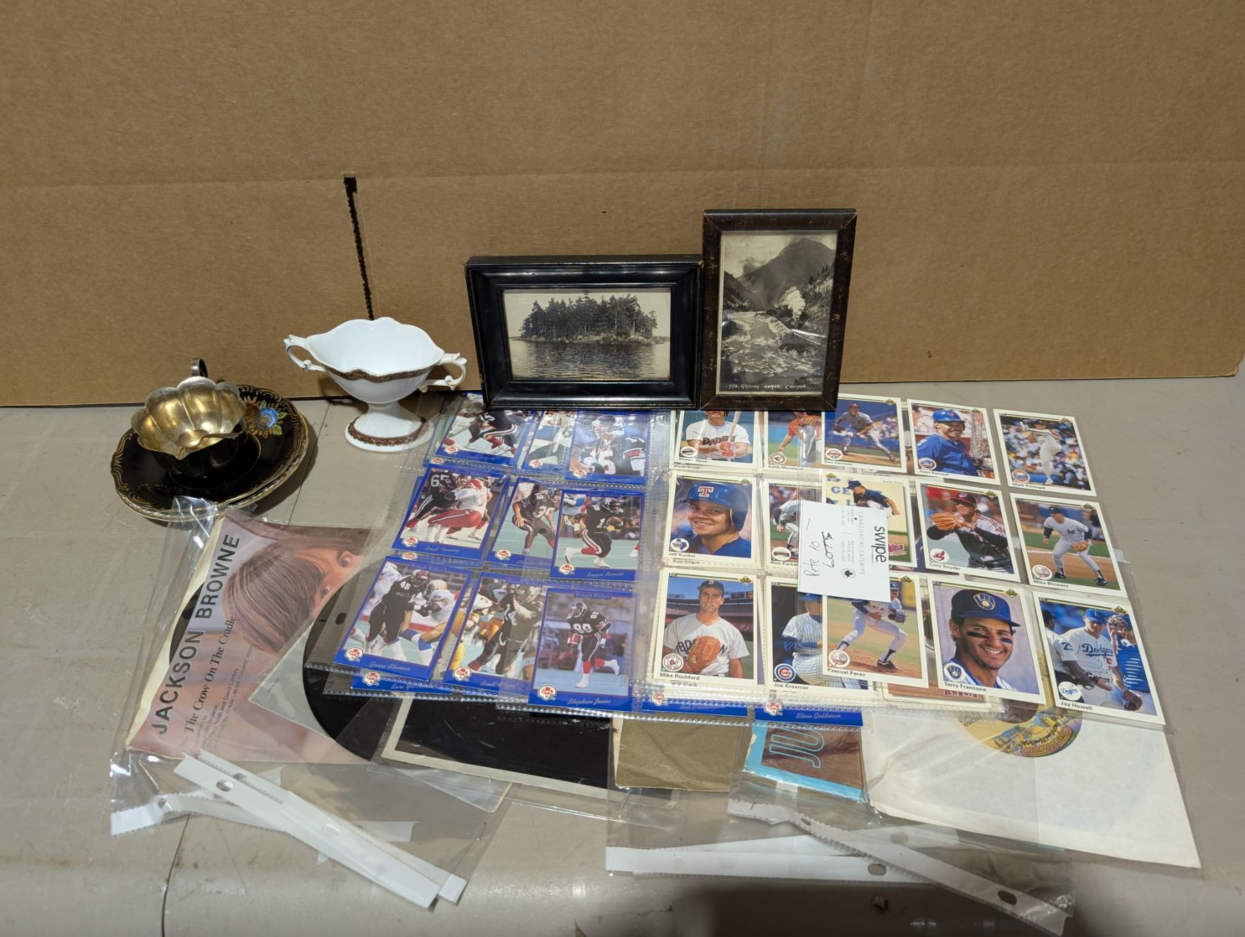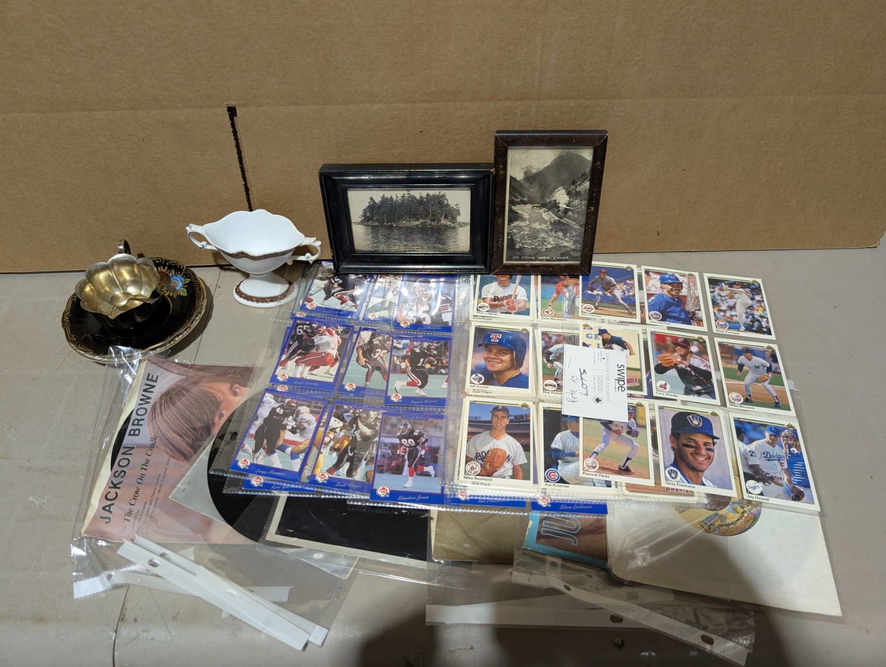 Lot of Misc. Items as shown (Antique Photos, Football Cards, LPs, and etc.)