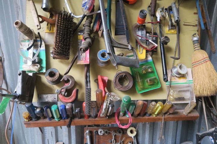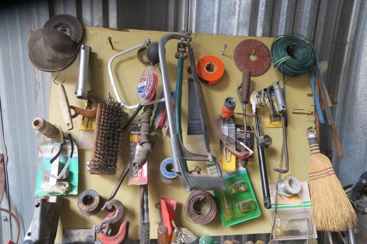 Lot of Misc. Shop Items Including Whisk Brook, Grinding Wheels, Hacksaw and More