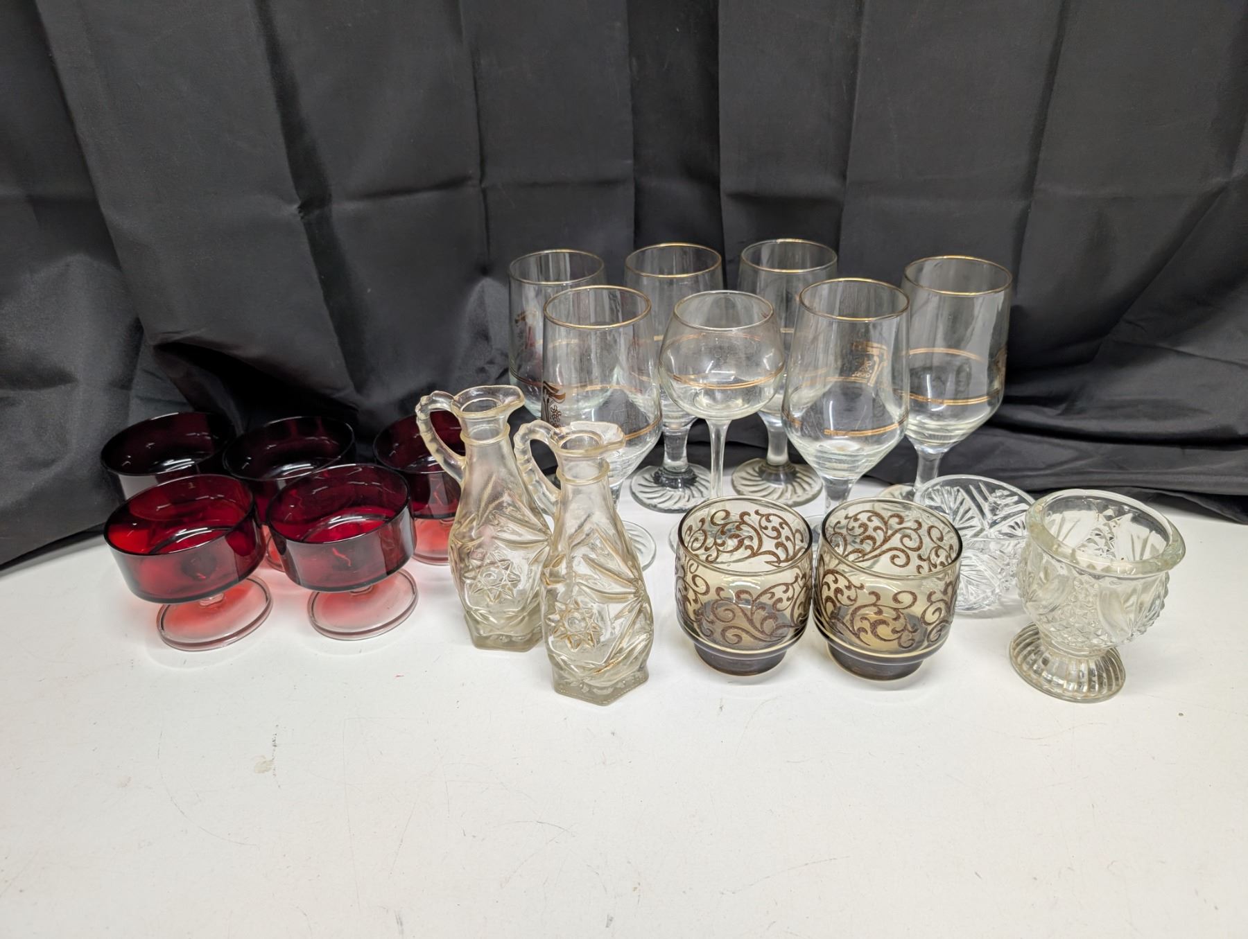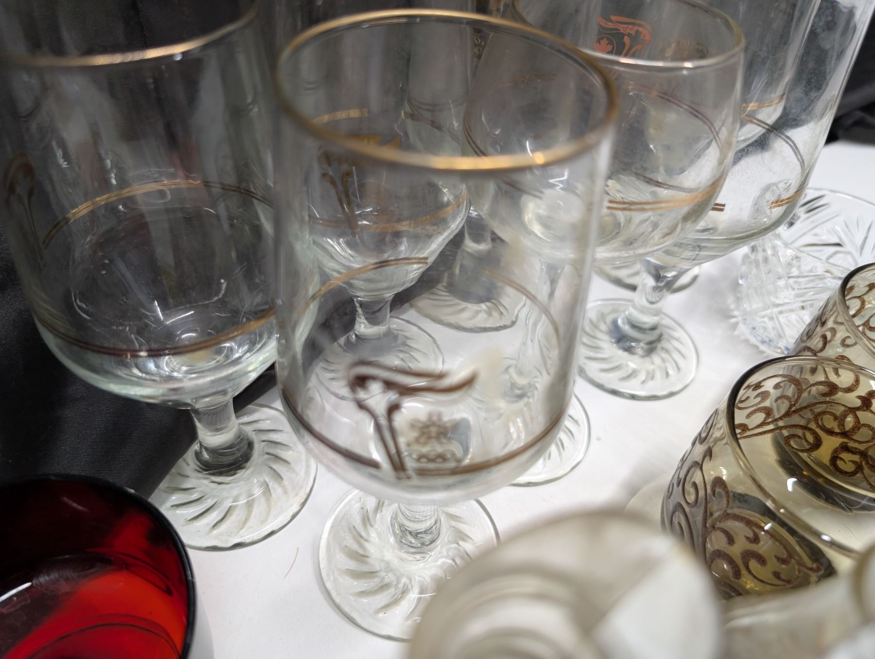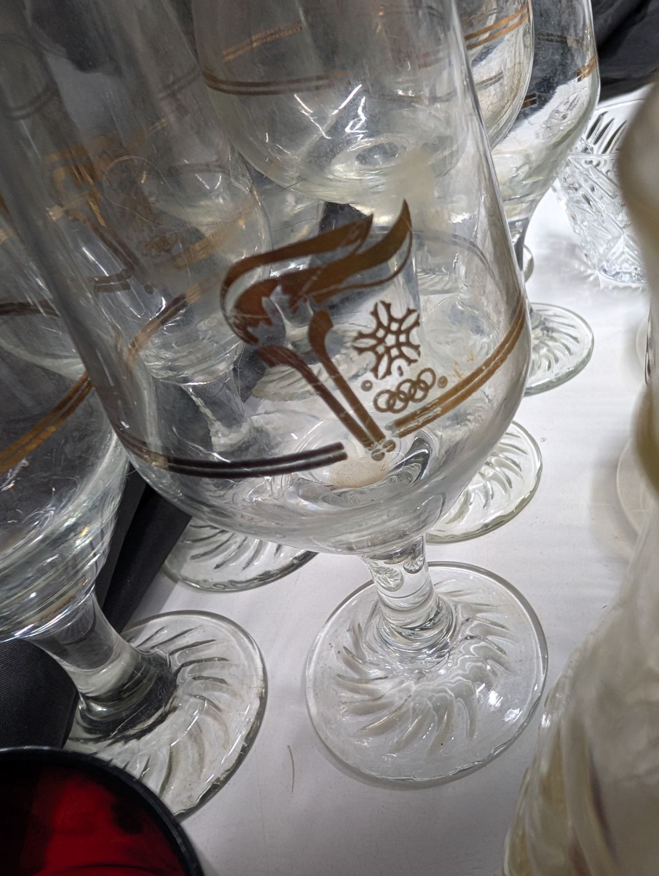 Lot of Misc. glass(Olympic Wine Glasses, Red Glasses, and etc.)