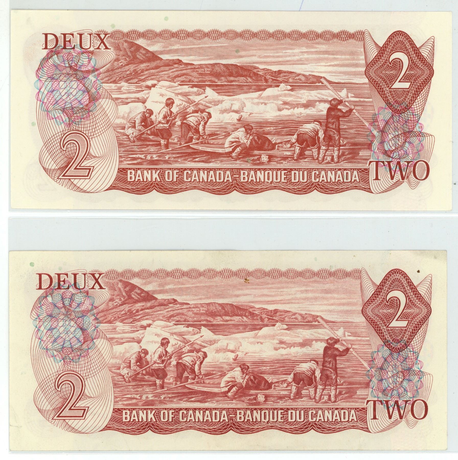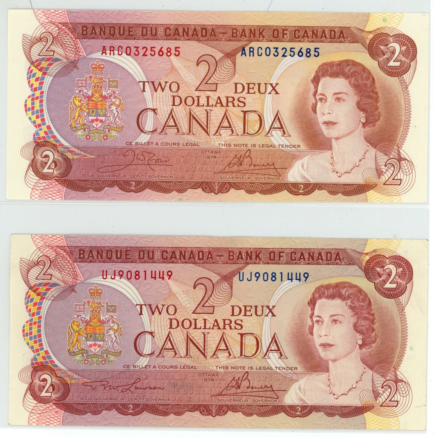 Lot of Near Uncirculated 1974 Canada $2 Bills - Crow/Bouey/Lawson
