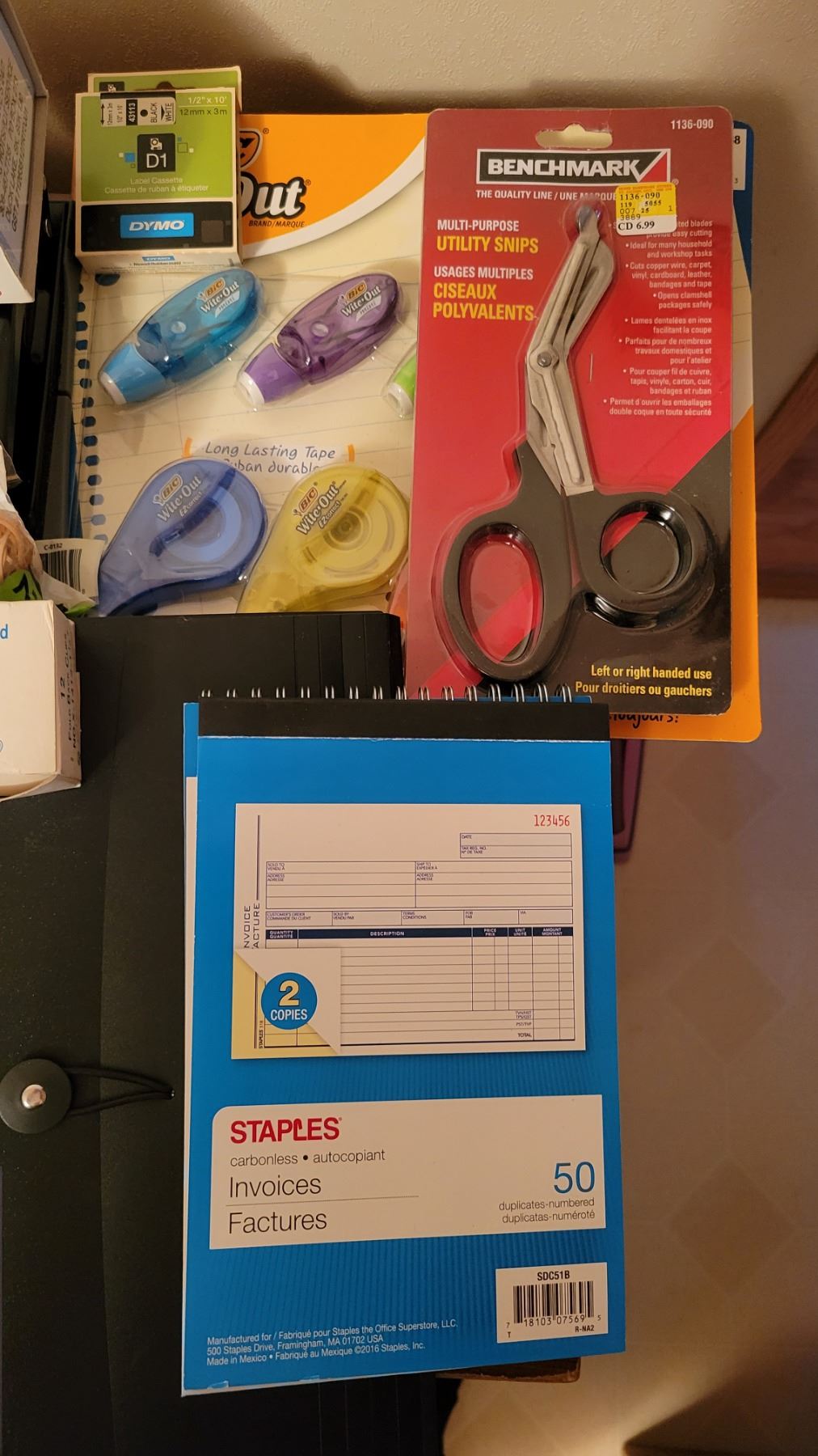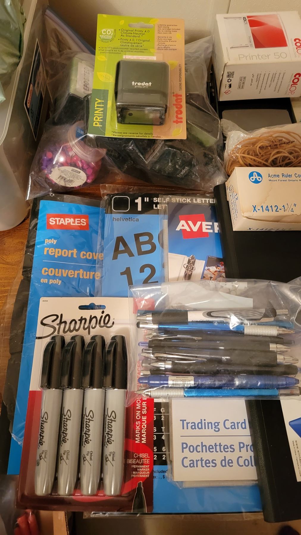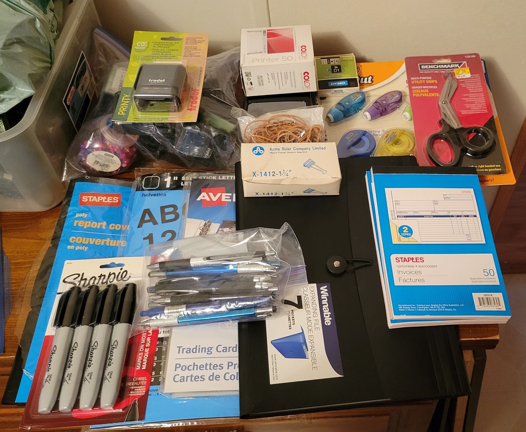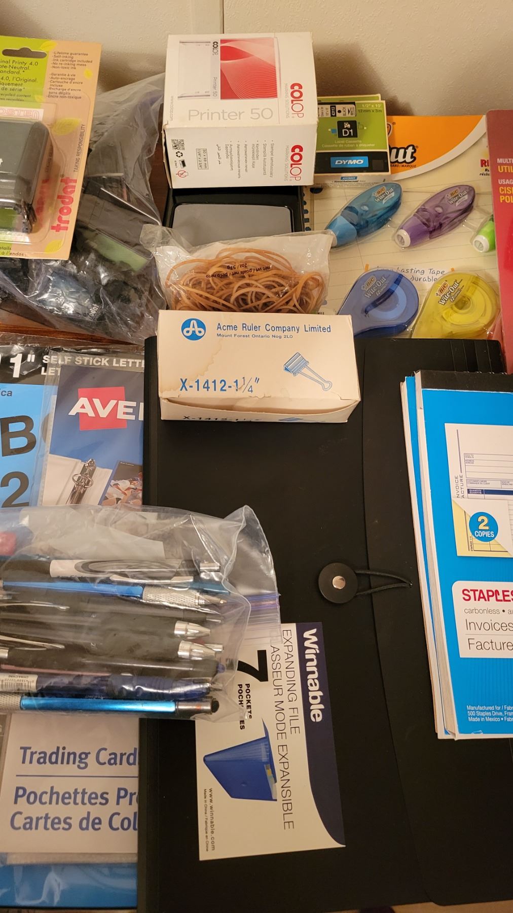 Lot of Office supplies (stamps, stamp pads, white out, scissors, pens)