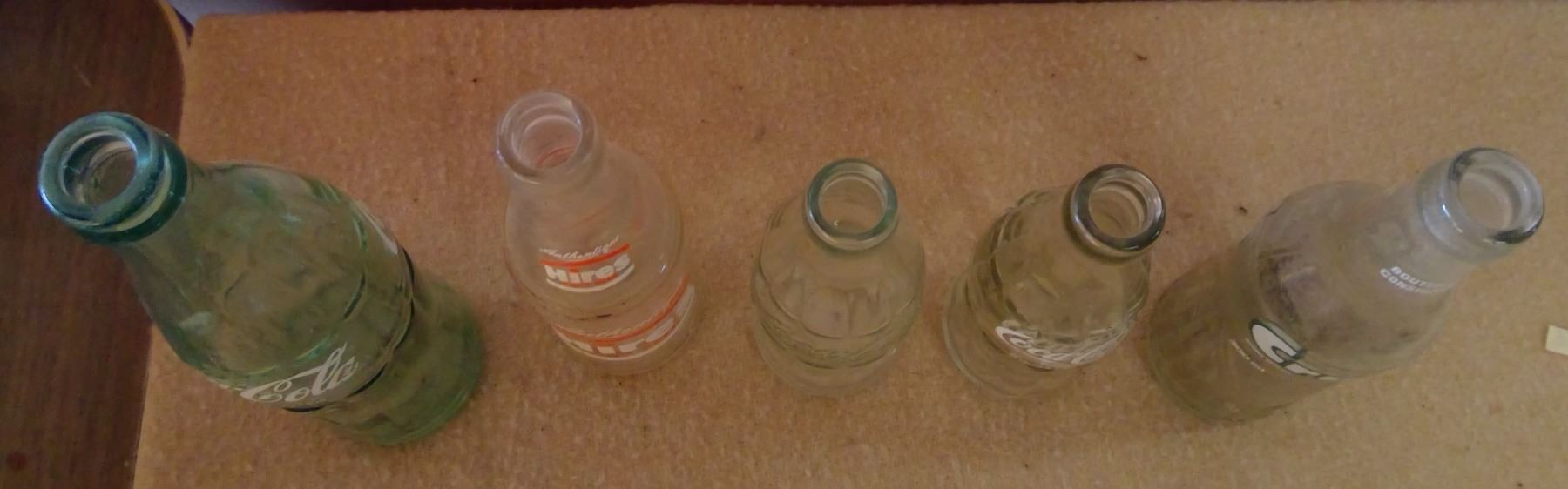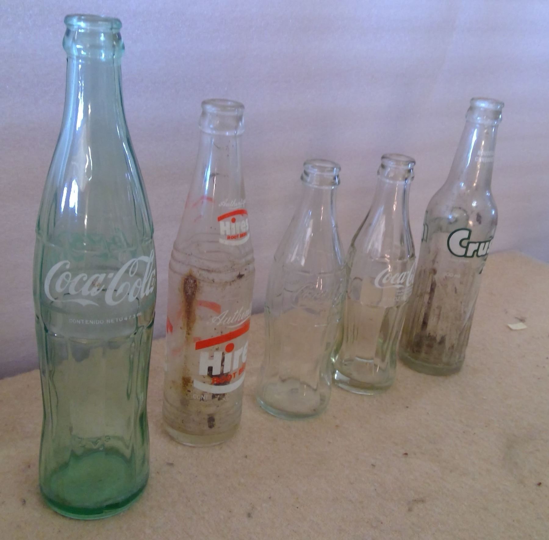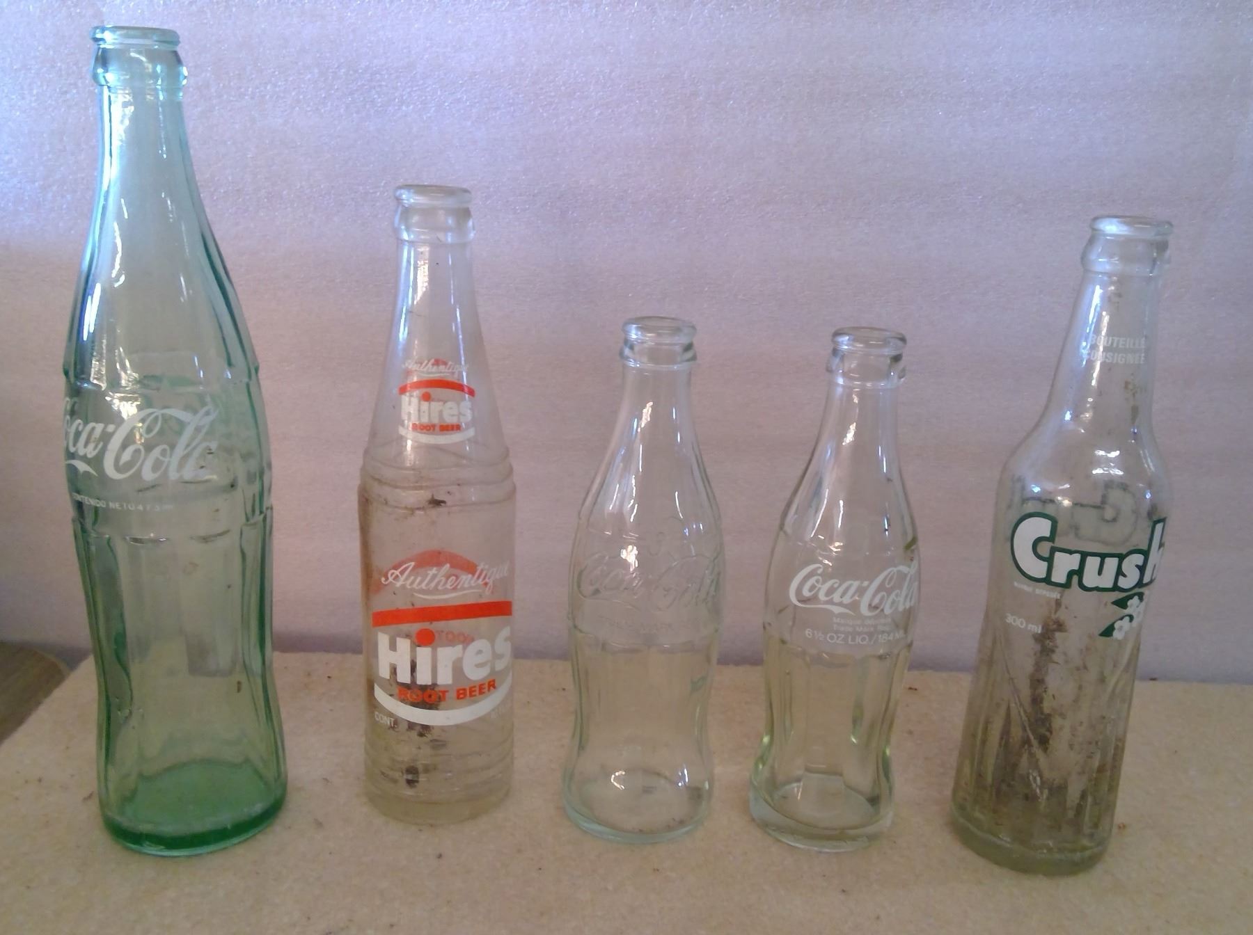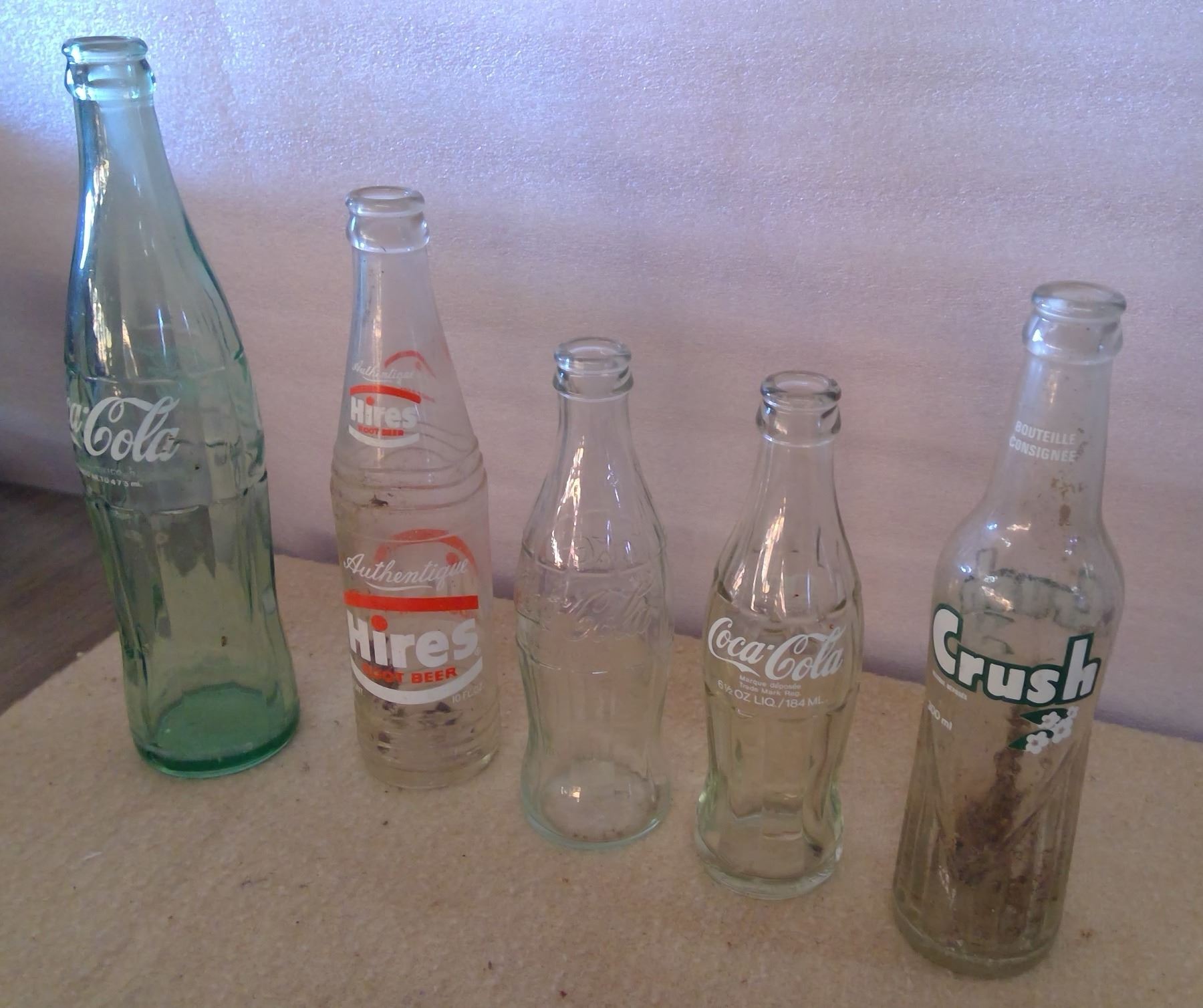 Lot of Old Glass Bottles - Coca Cola, Crush, Hires