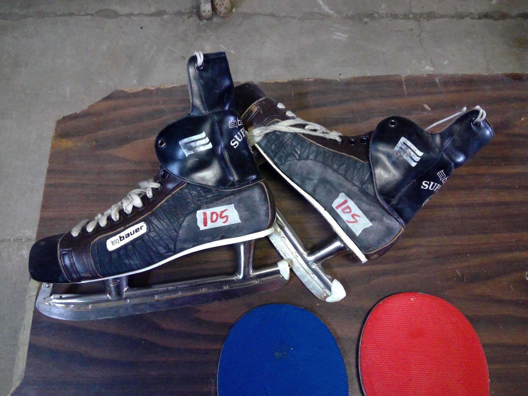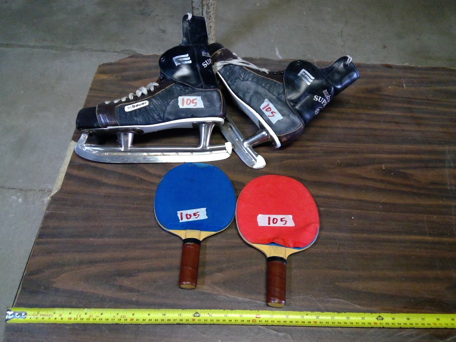 Lot of Ping Pong Paddles and Vintage Ice Skates