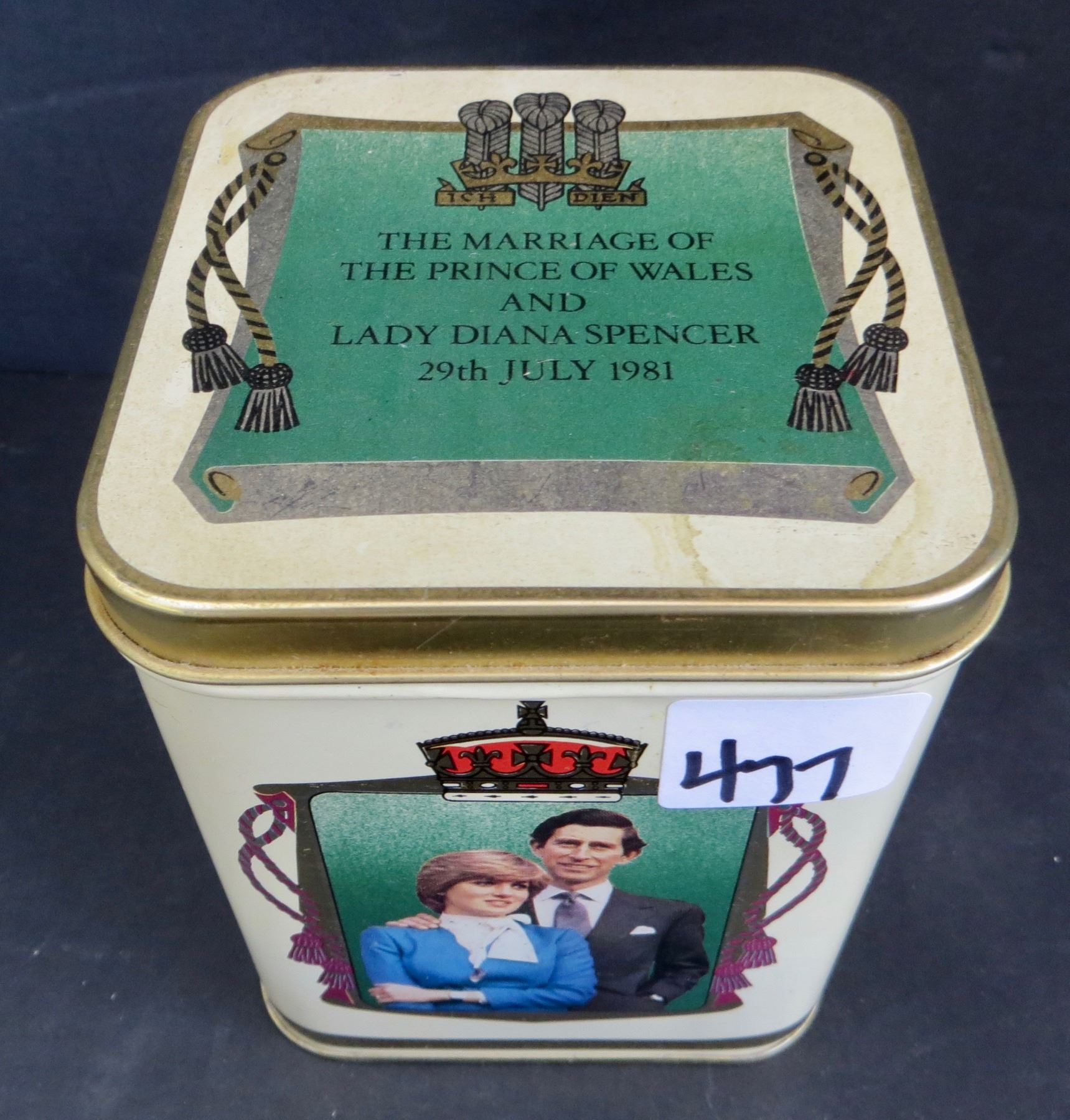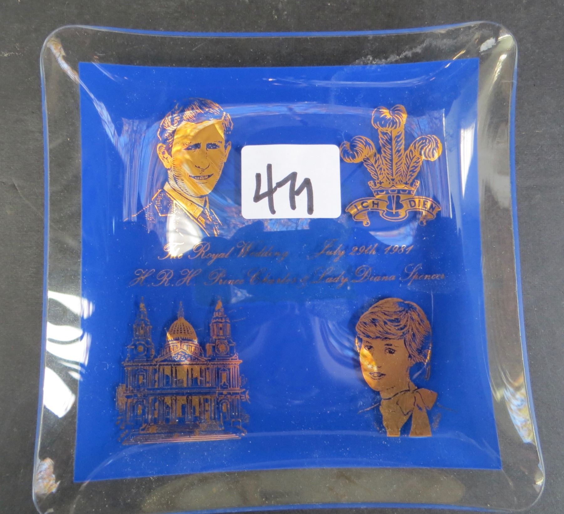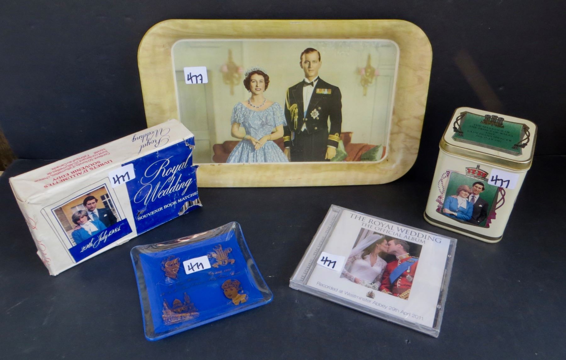 Lot of Royality items - Charles & Diana ashtray, tin can, unused 50 book matches - serving tray