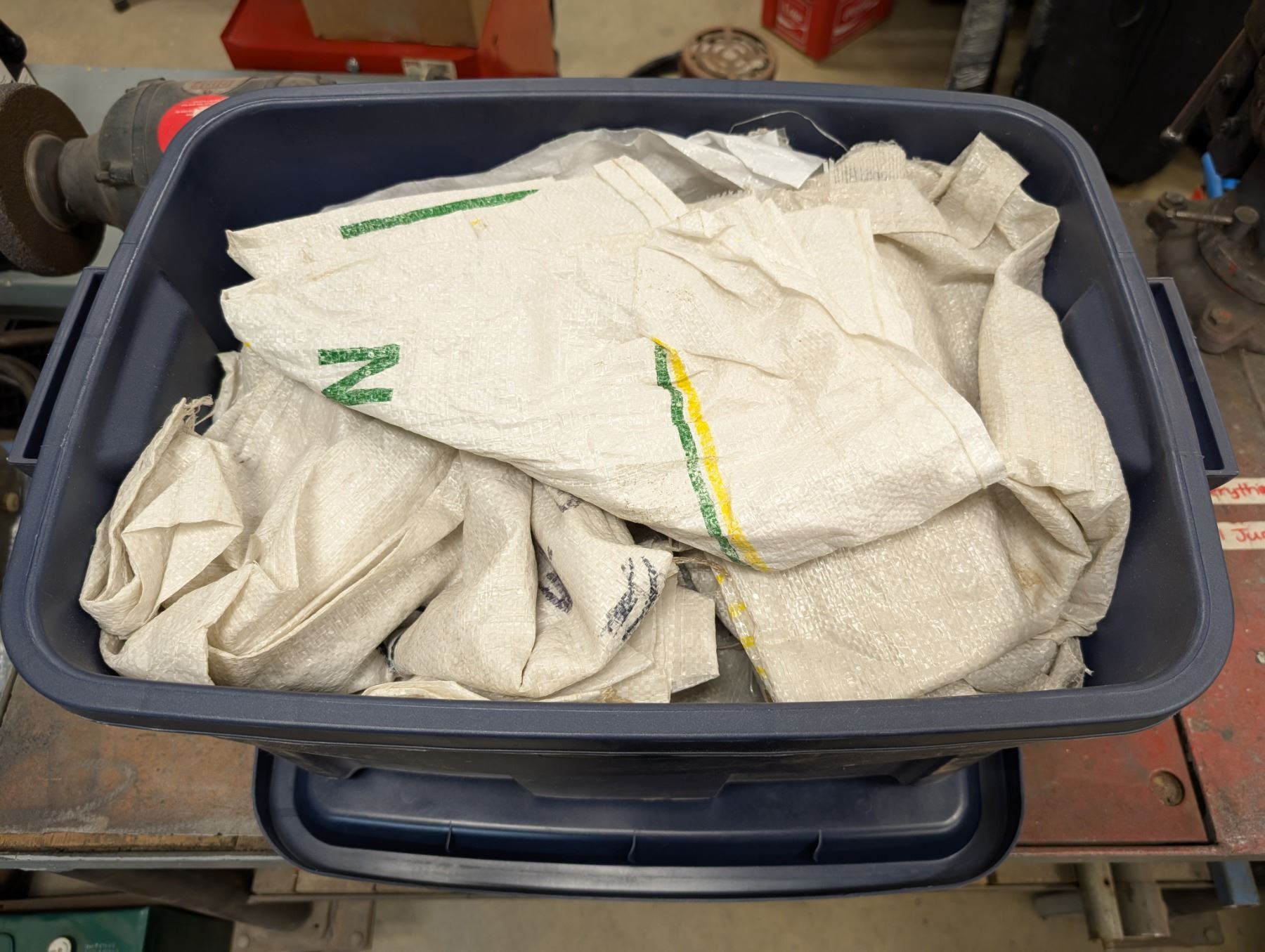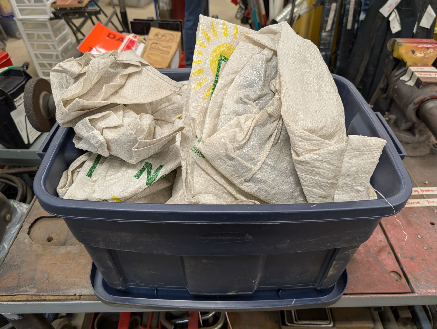 Lot of Sand Bags w/ Blue Tubber ware box