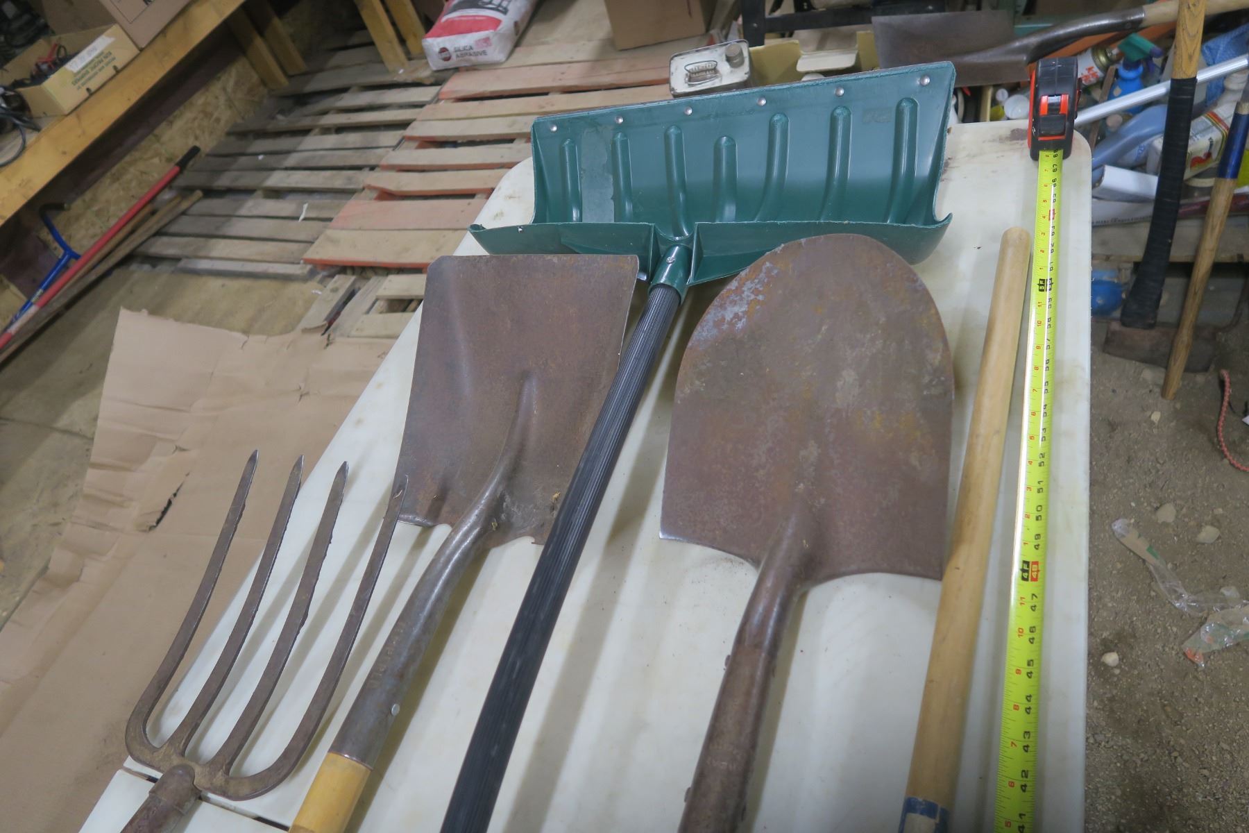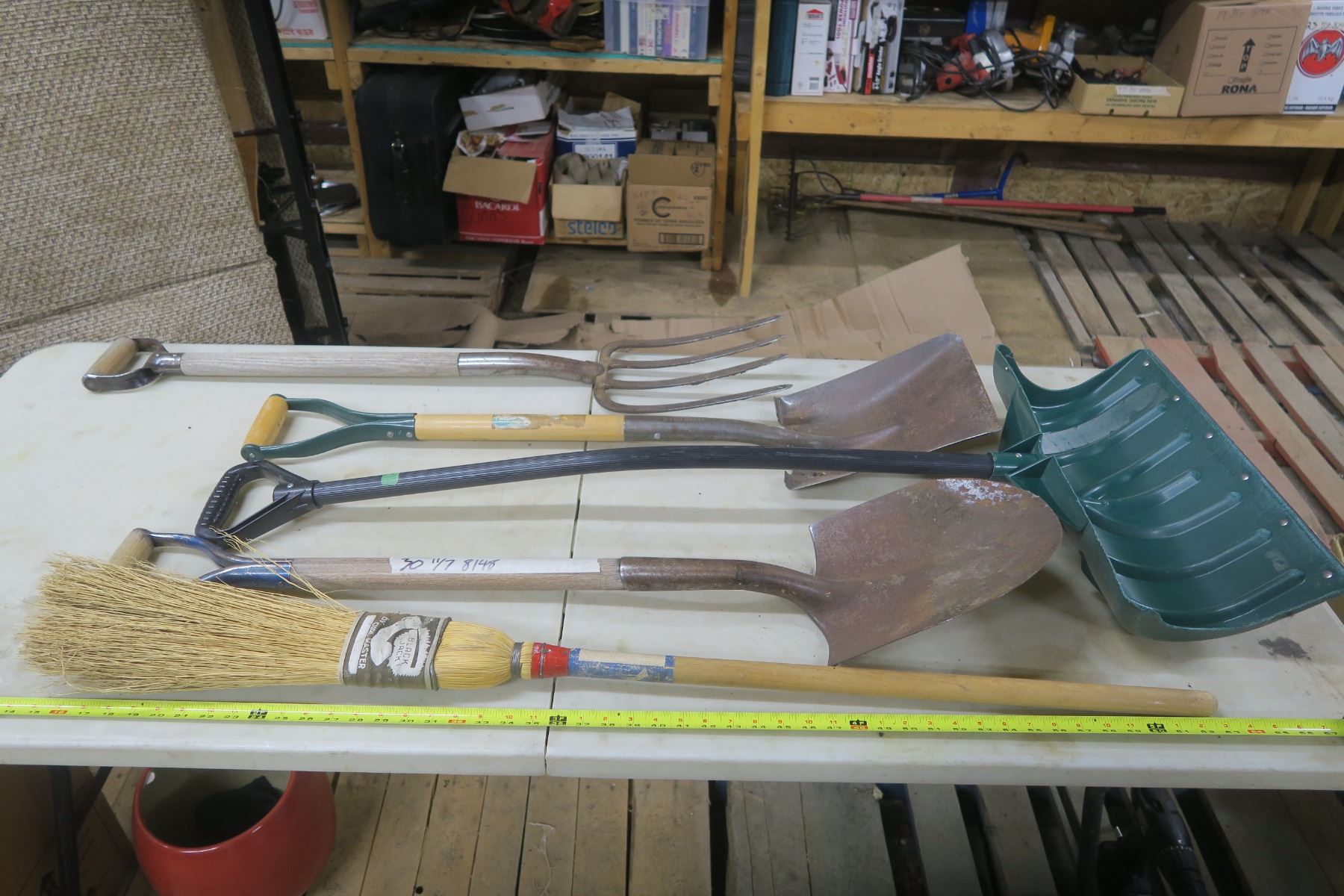 Lot of Shovels, Fork, and Broom