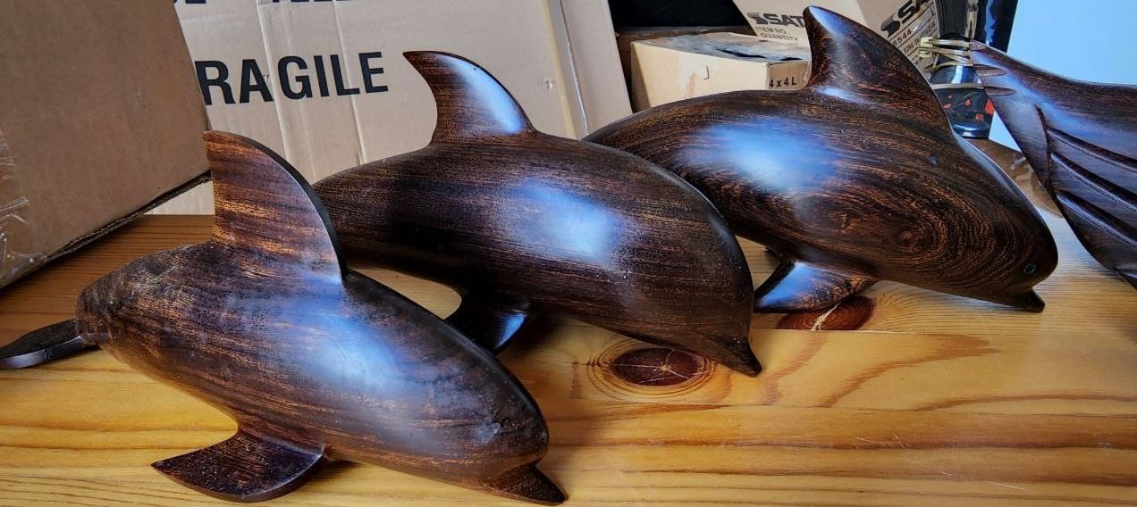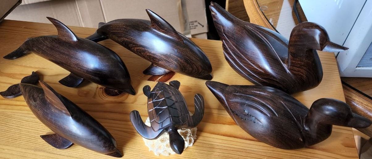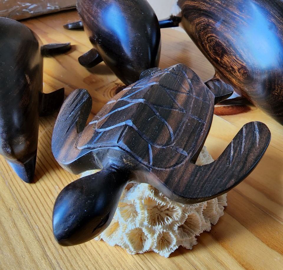 Lot of Solid Wood Figurines, Turtle is sitting on a real Ocean Coral