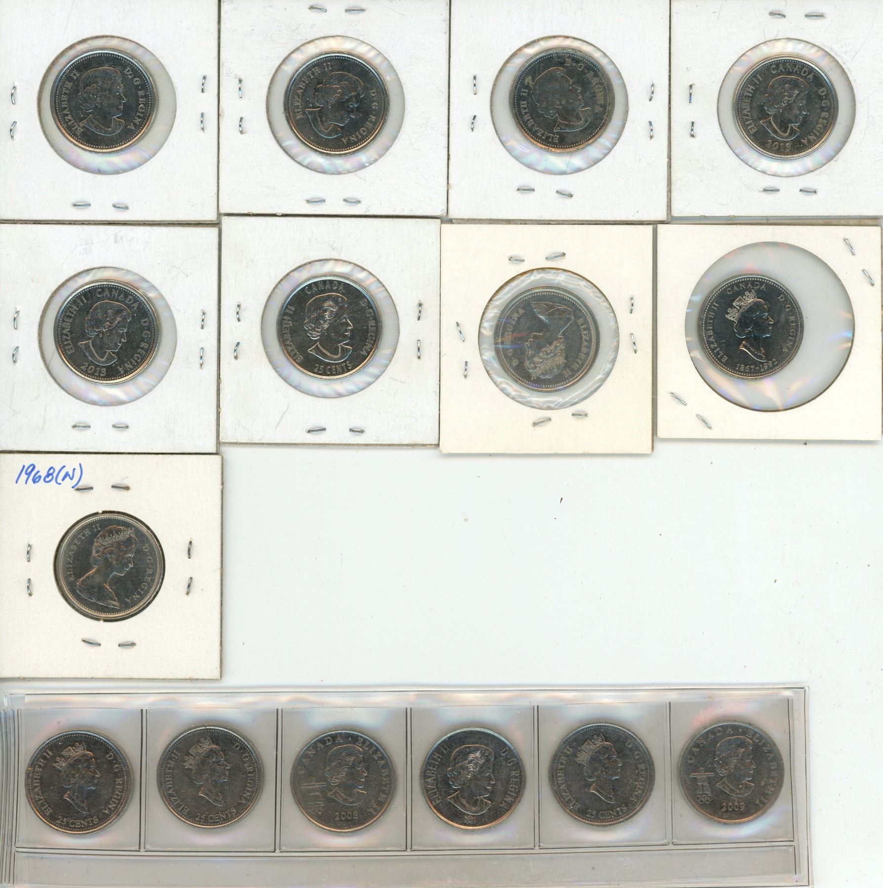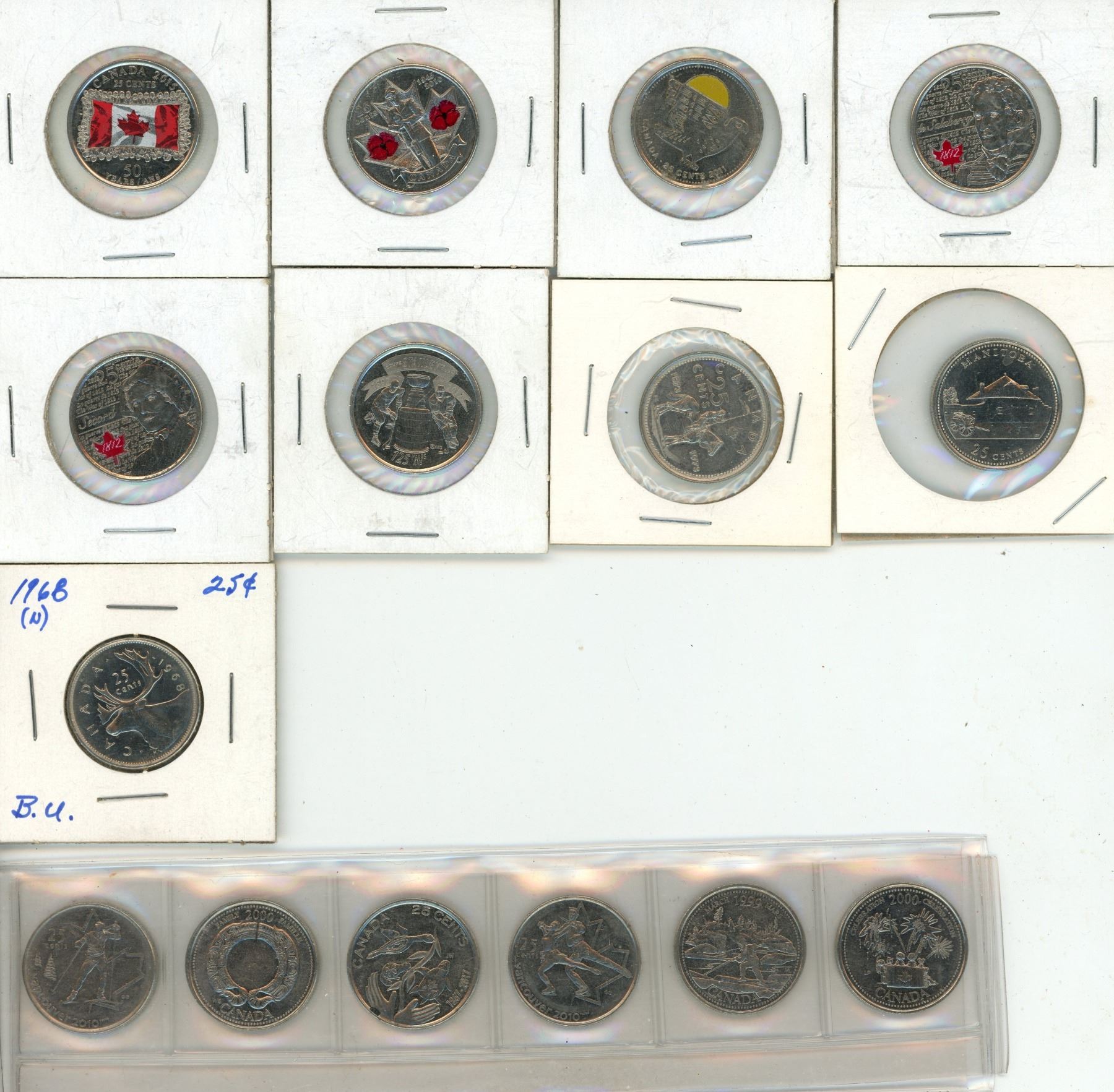 Lot of Special Colour and Uncolour Canada 25 Cents. (Total 15 Coins)