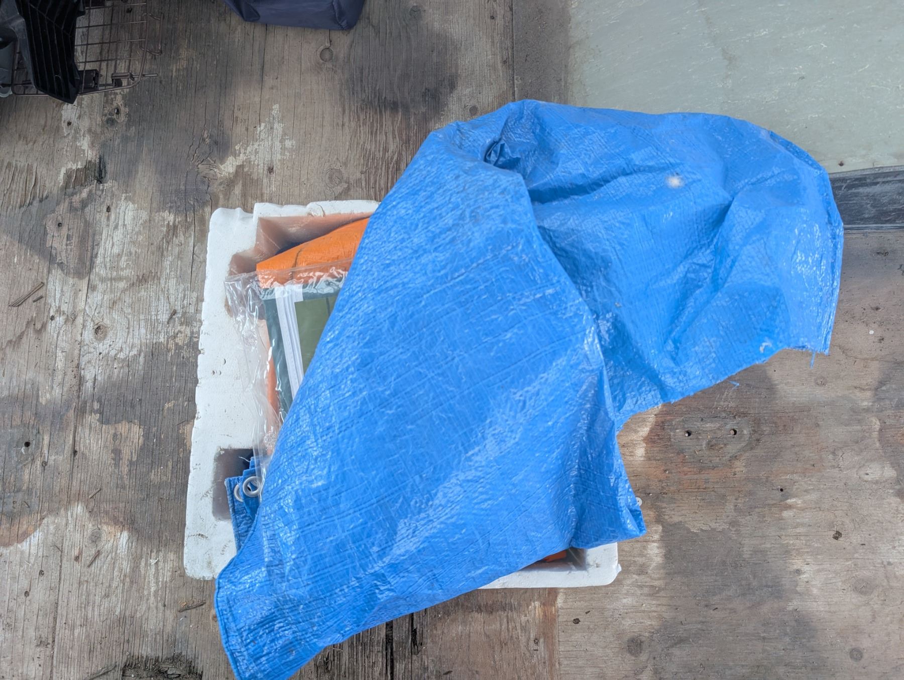 Lot of Tarps (Variety lengths, Smaller) and Brand New Patio Cover 60"x27"