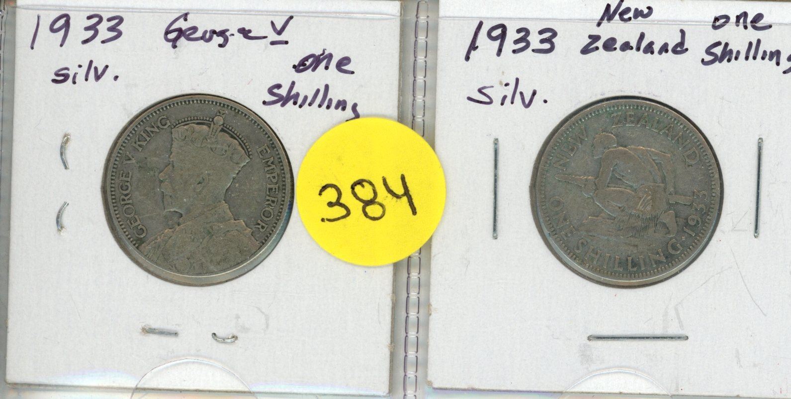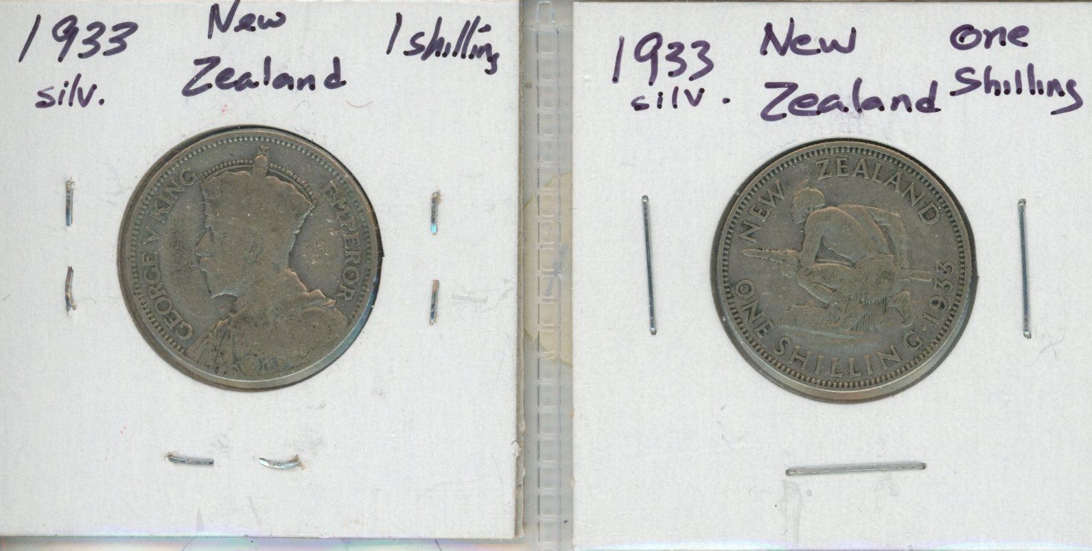 Lot of Two 1933 New Zealand Silver One Shilling Coins