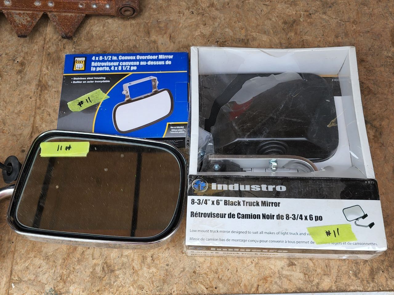 Lot of Vehicle Mirrors - 8 3/4 x 6 New Black Truck Mirror, 4 x 8 1/2 New Convex Mirror, Remote Truck Mirror