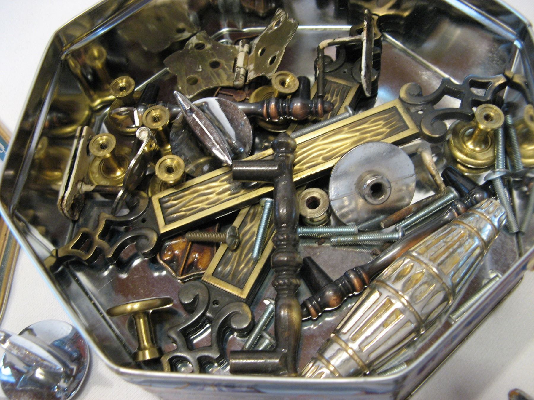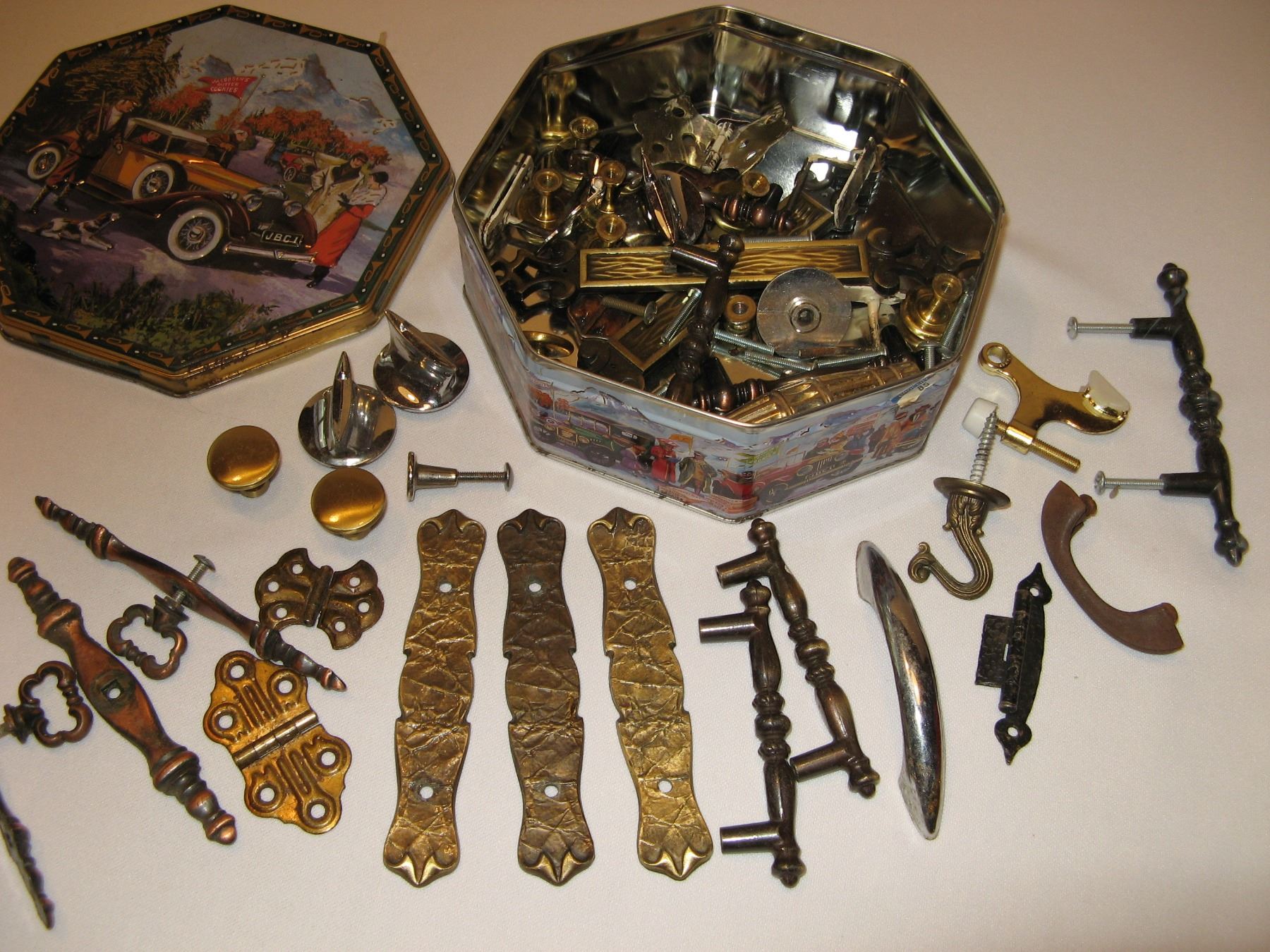 Lot of Vintage Cupboard Handles, Knobs, Hinges