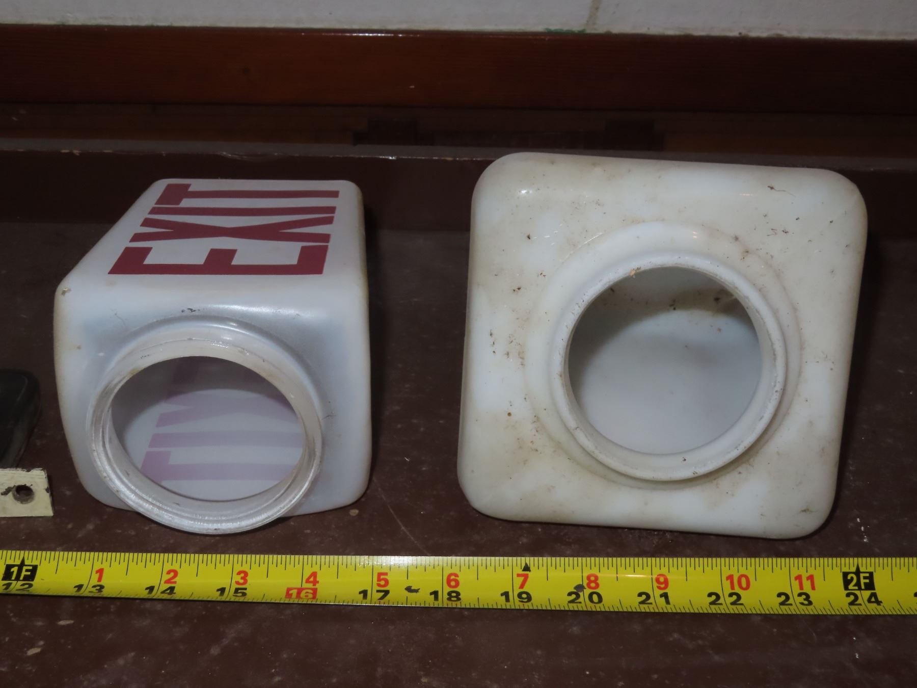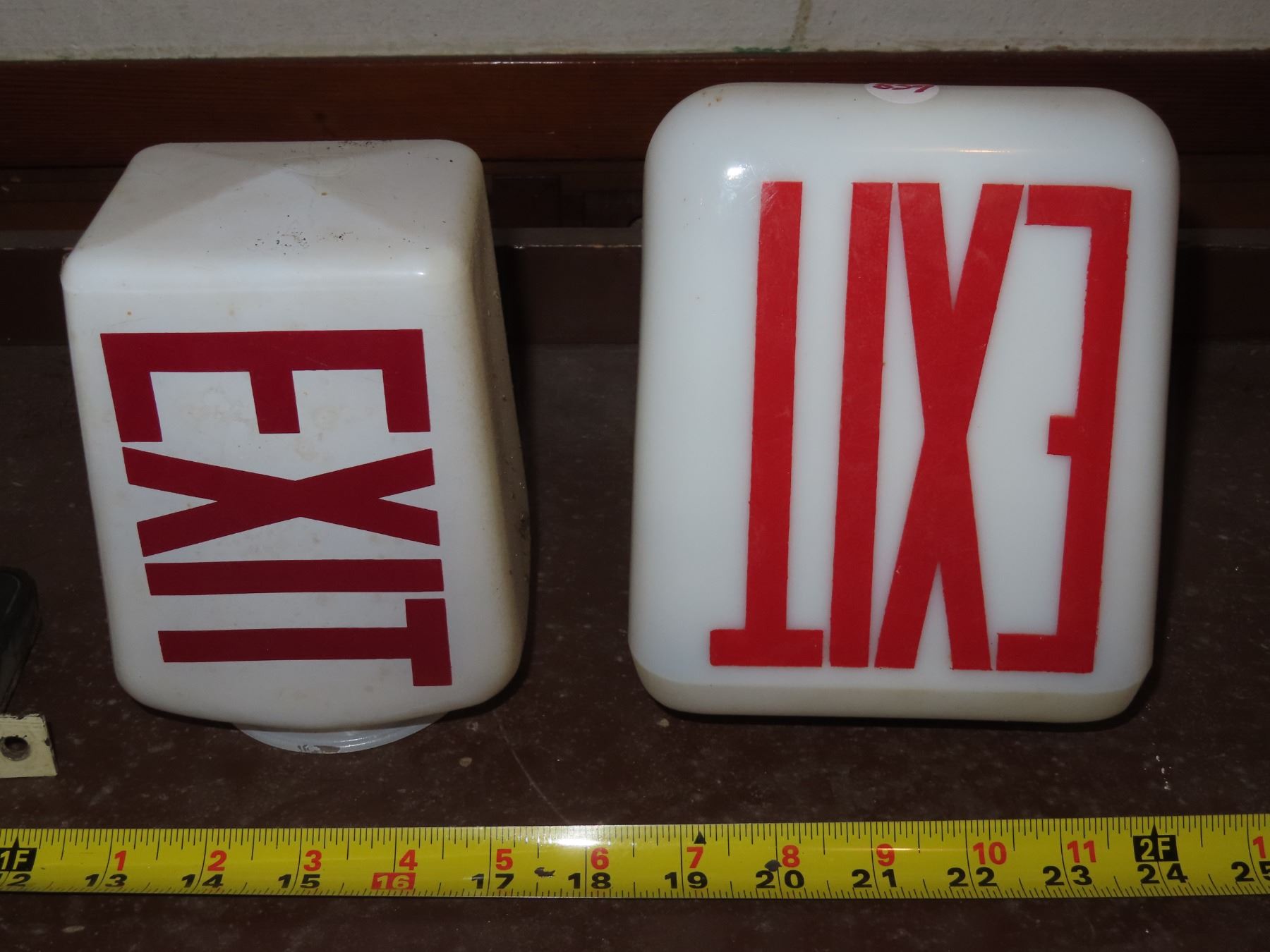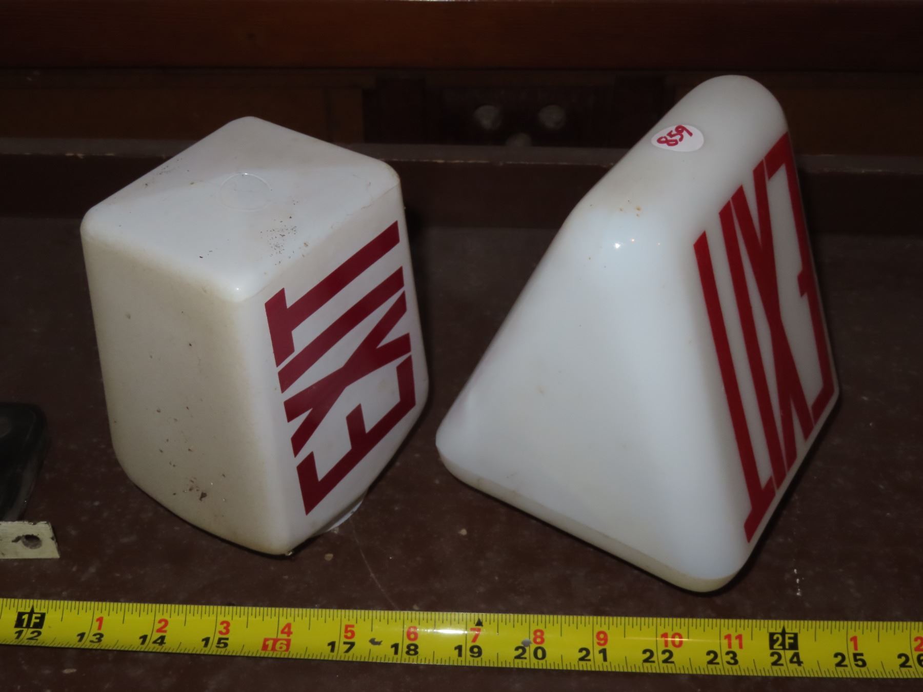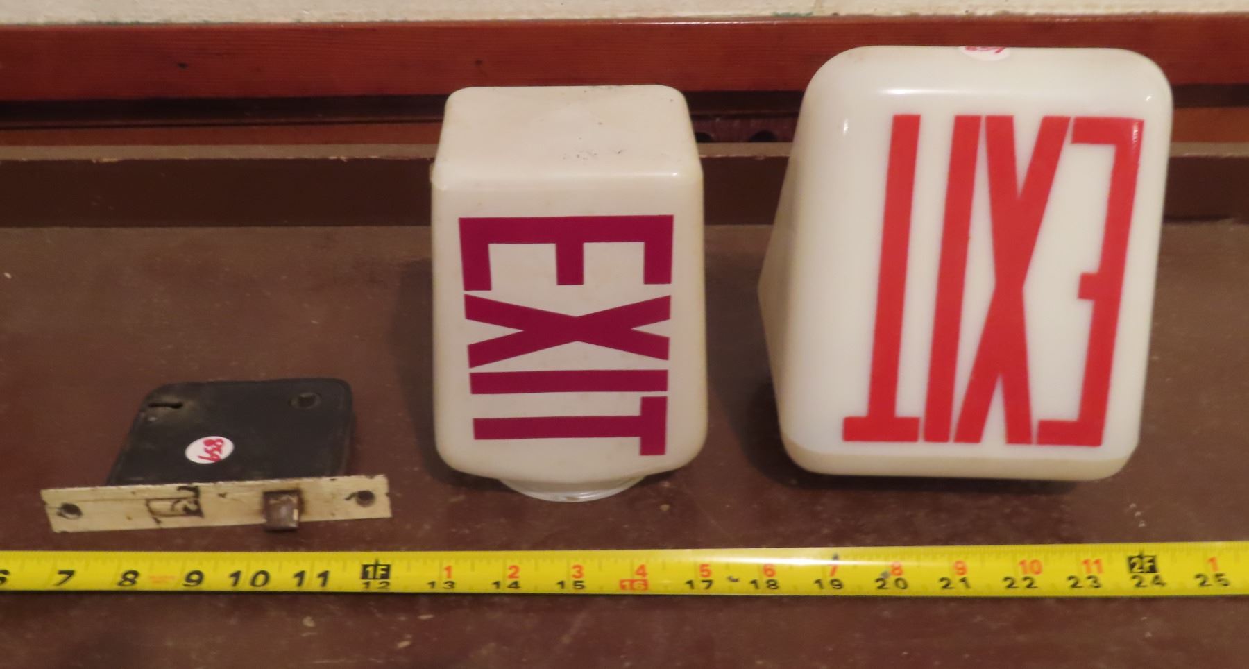 Lot of Vintage Emergancy Exit light fixtures + Porclein door latch