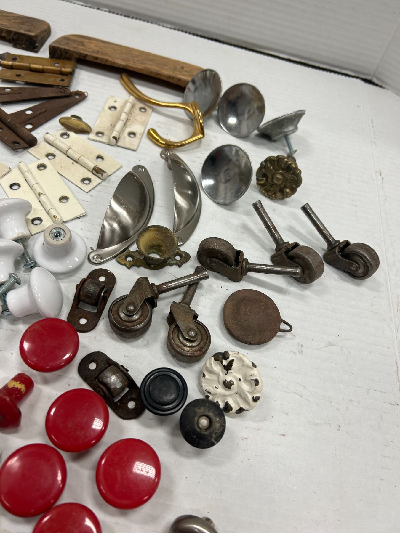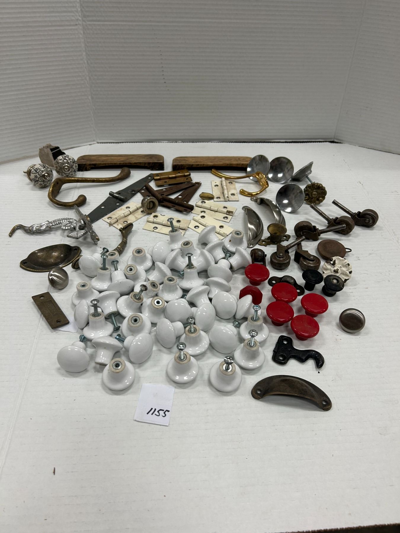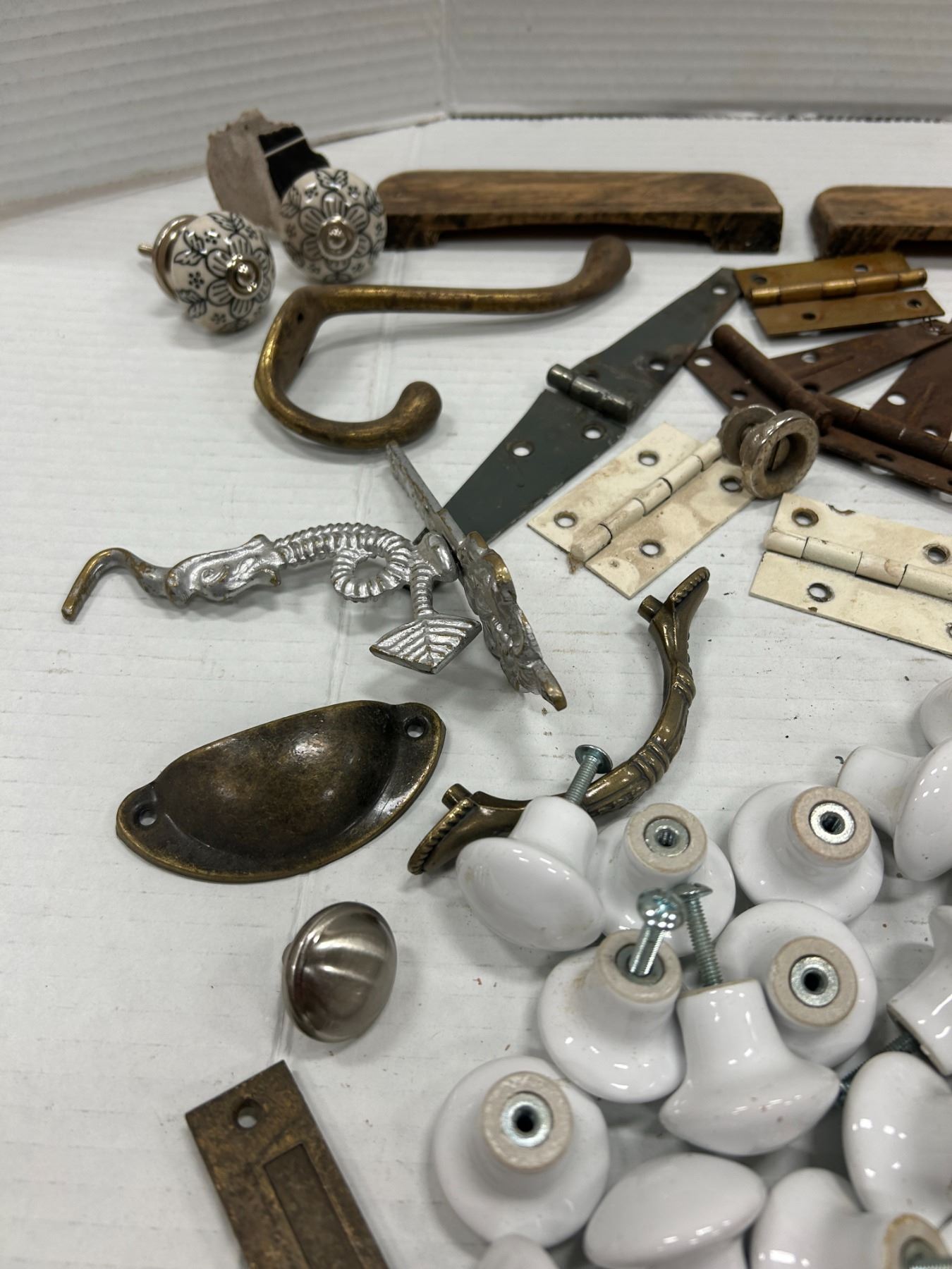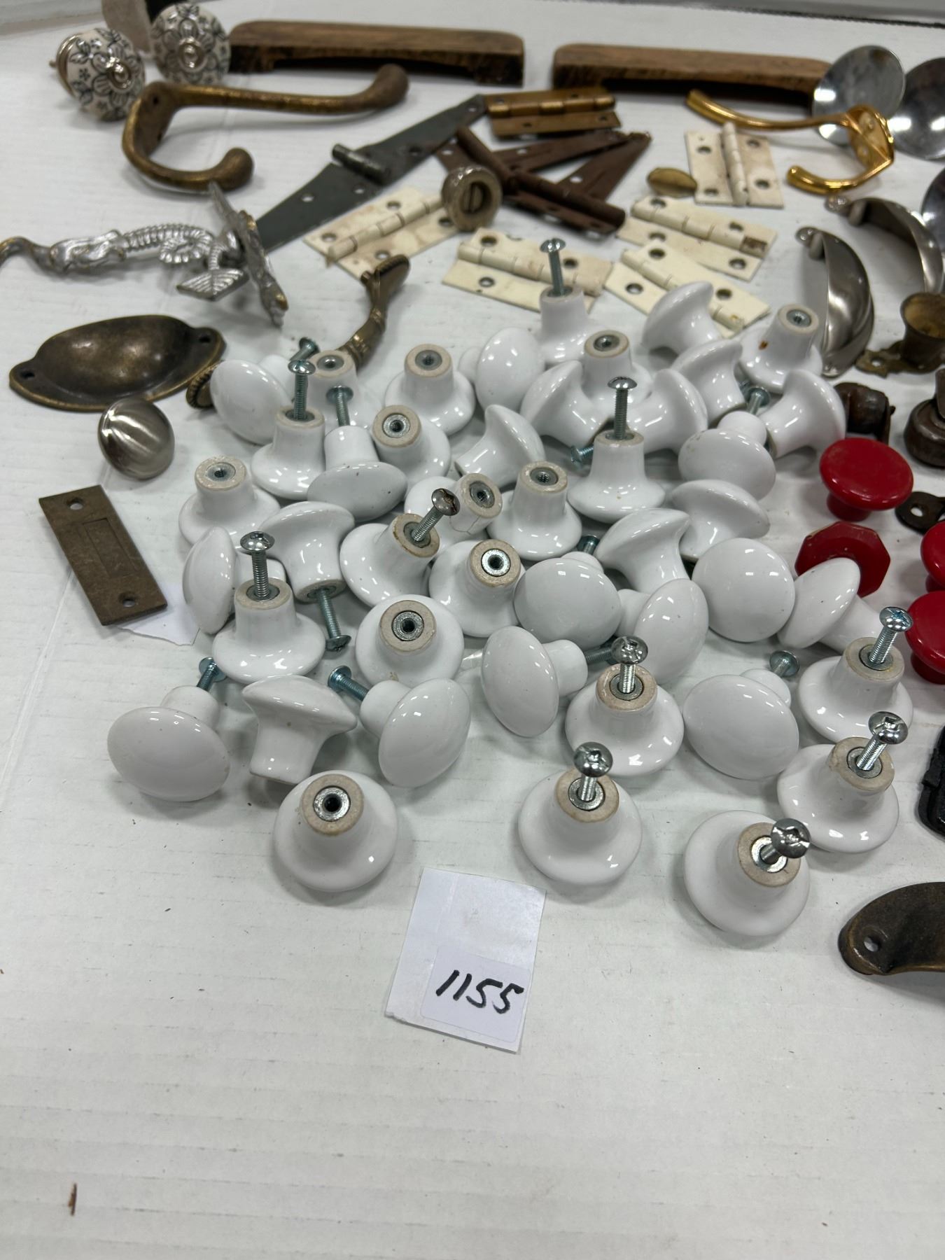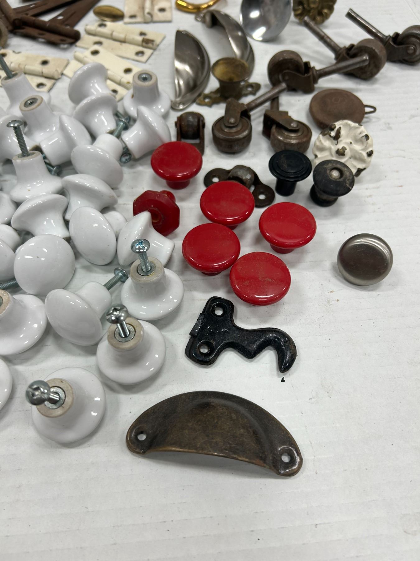 Lot of Vintage Hardware, over 40 white porcelain knobs, etc.