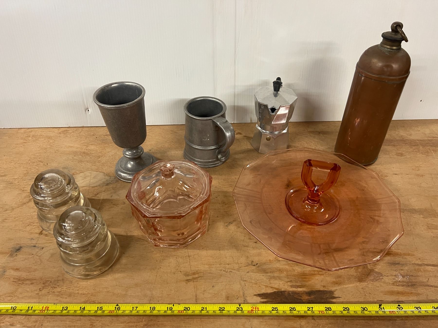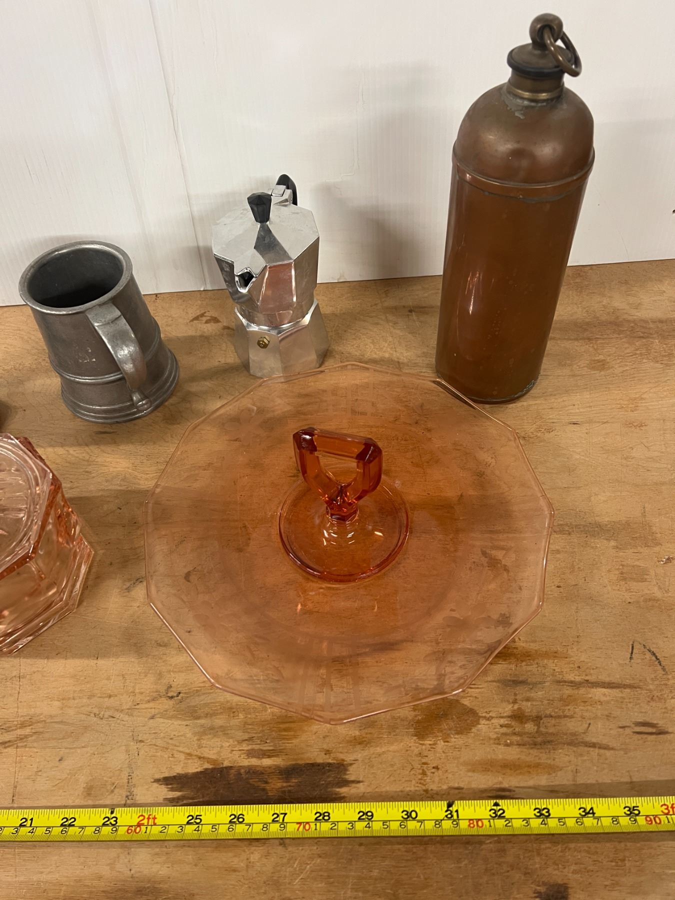 Lot of Vintage Items (Cups, Serving Plate, Coffee Maker, Water Bottle)