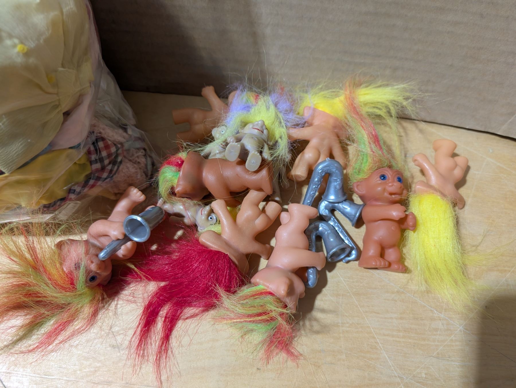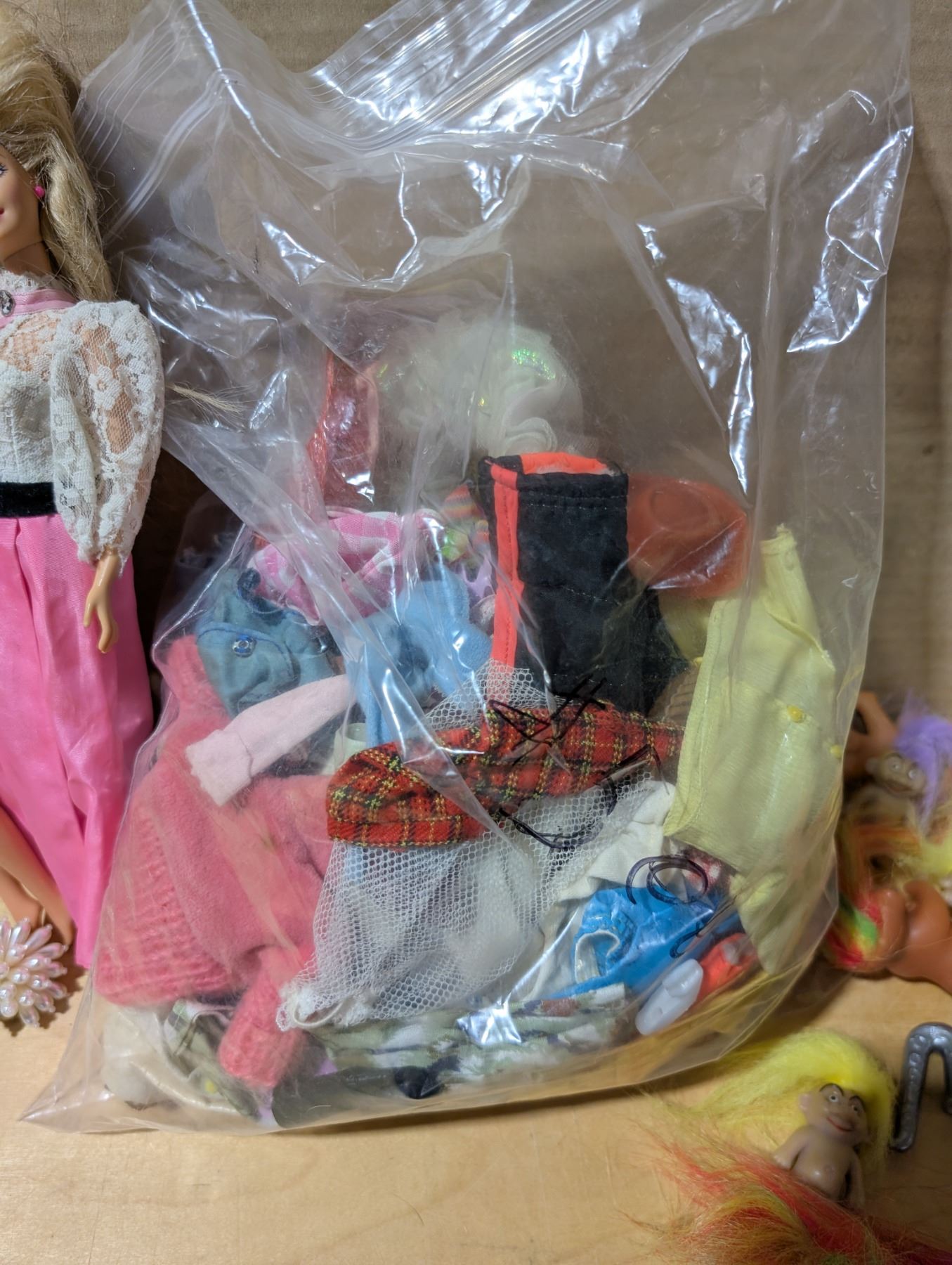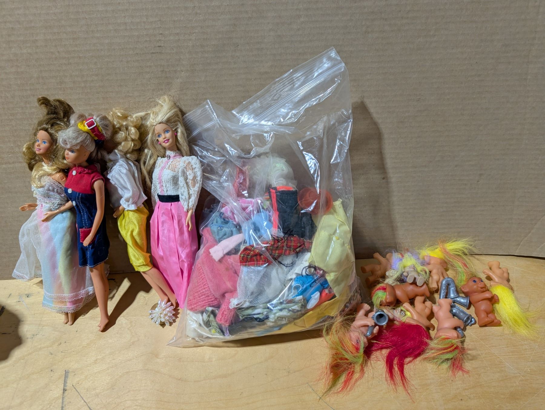 Lot of Vintage Russ Troll Dolls and Barbie dolls w/ Clothes