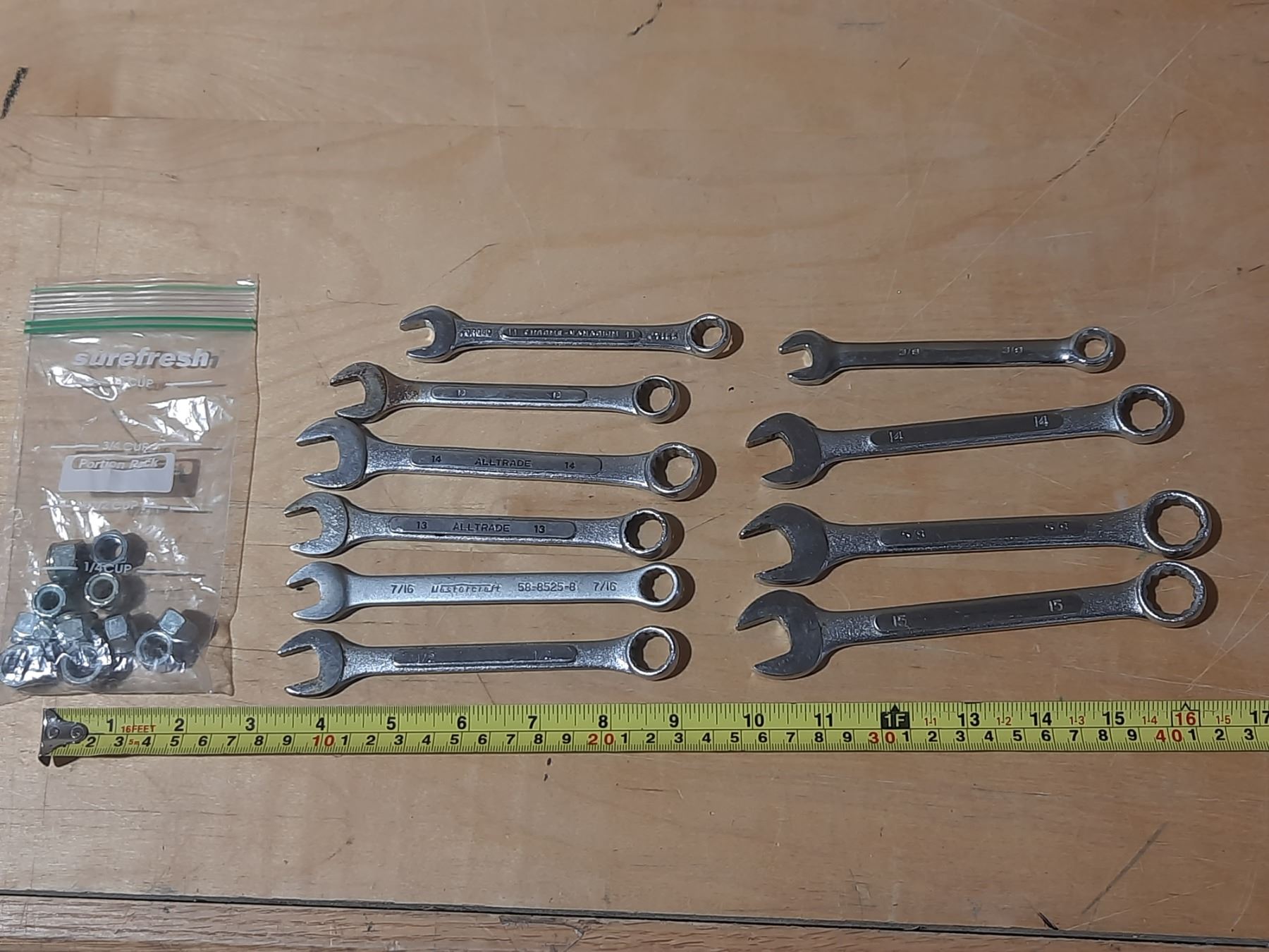 Lot of Wrenches with Bolts Nuts.