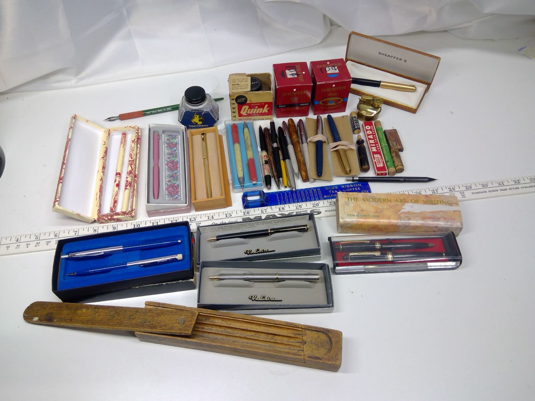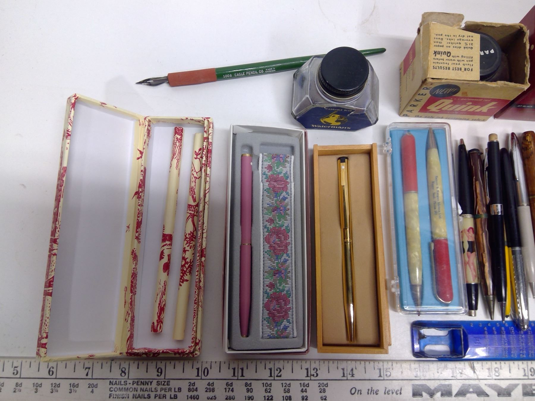 Lot of Writing Supplies - Pens, Pencils, Calligraphy Ink + Pen, etc.