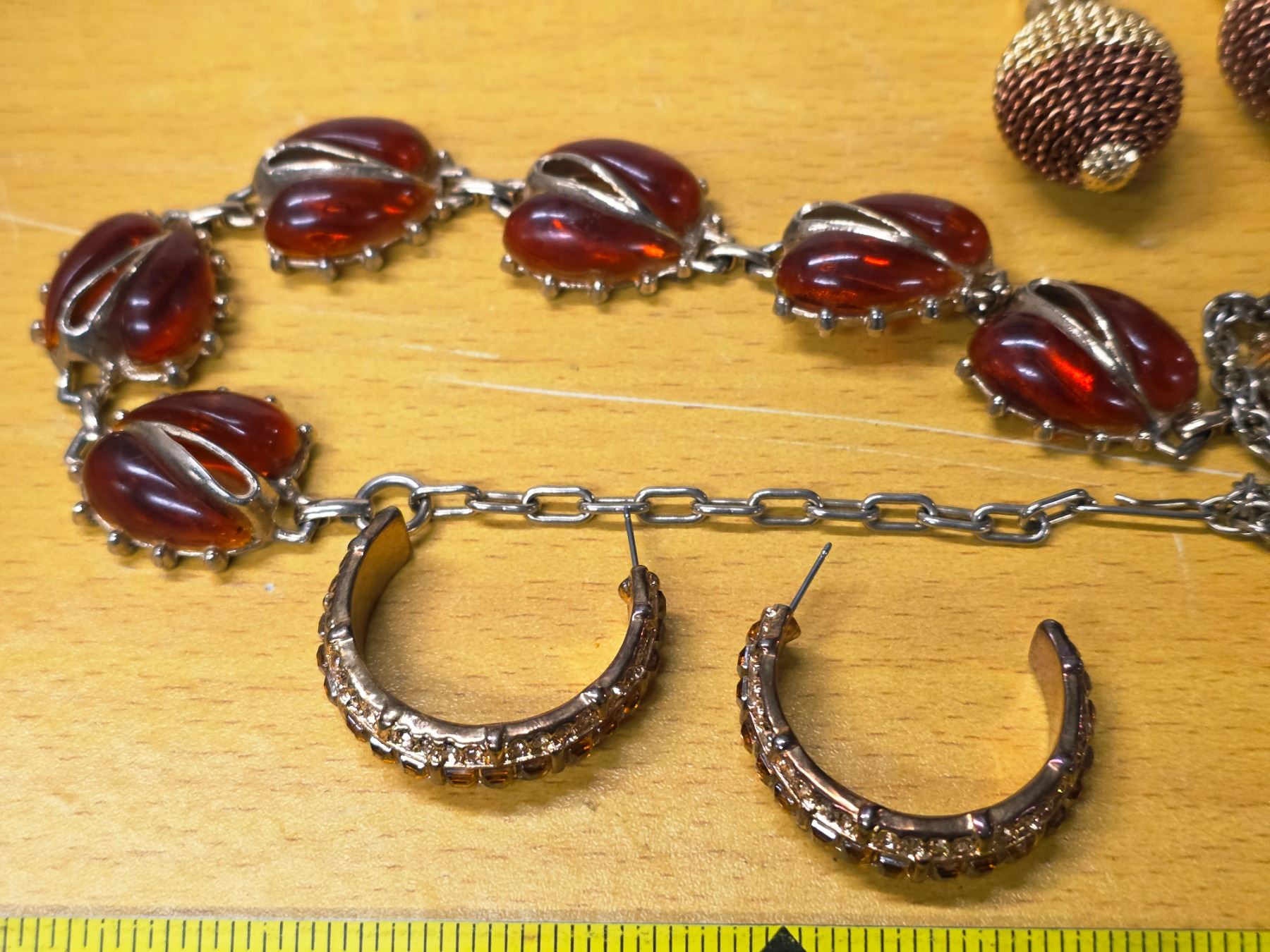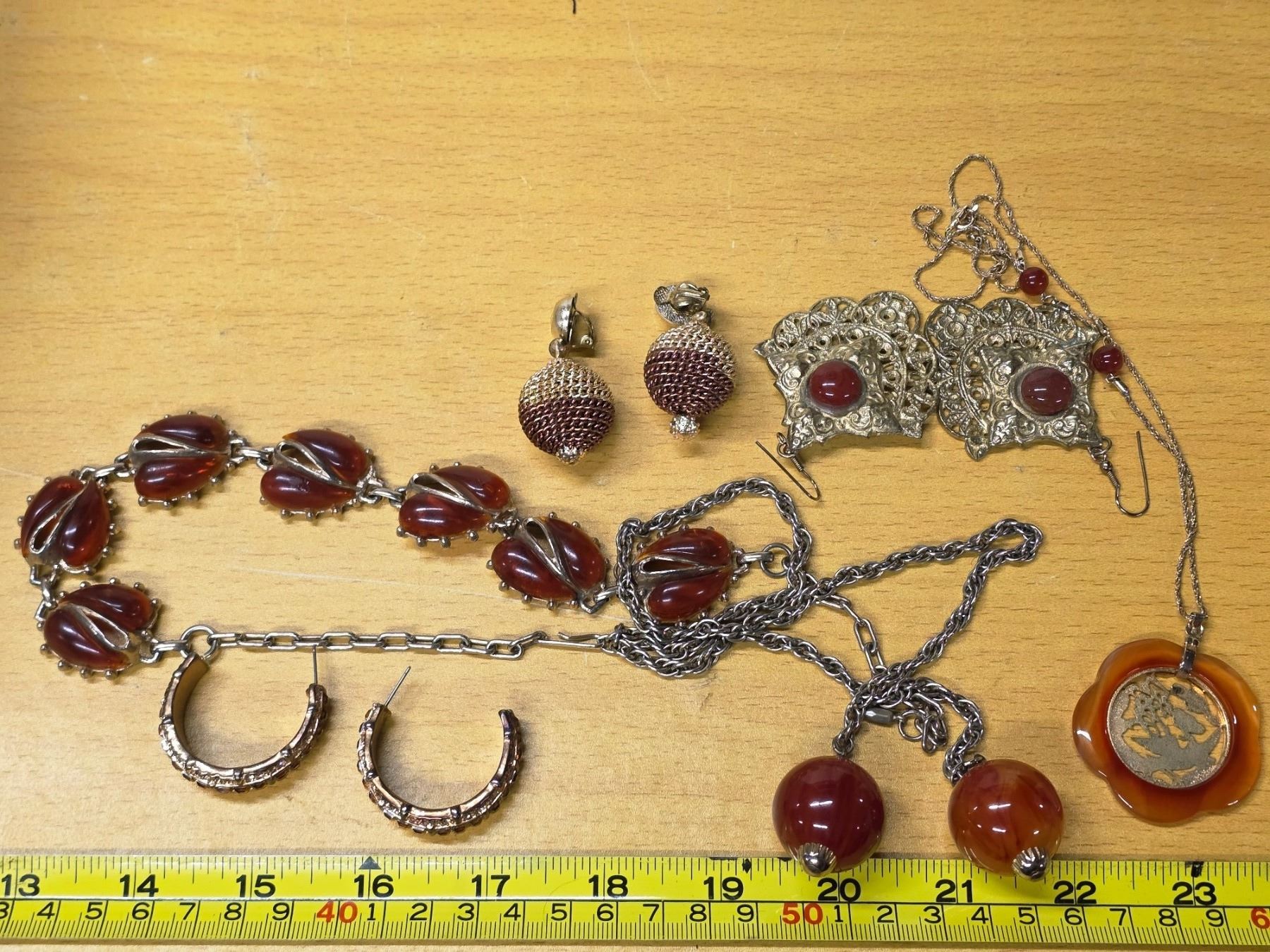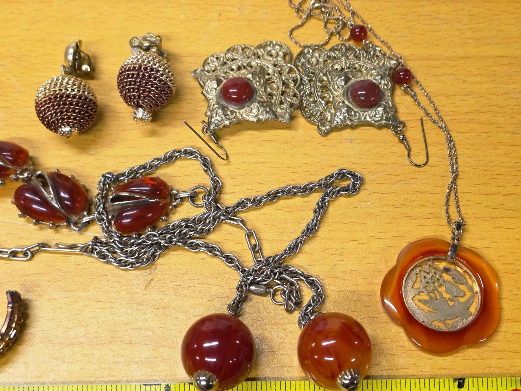 Lot of amber and gold toned colored jewelery