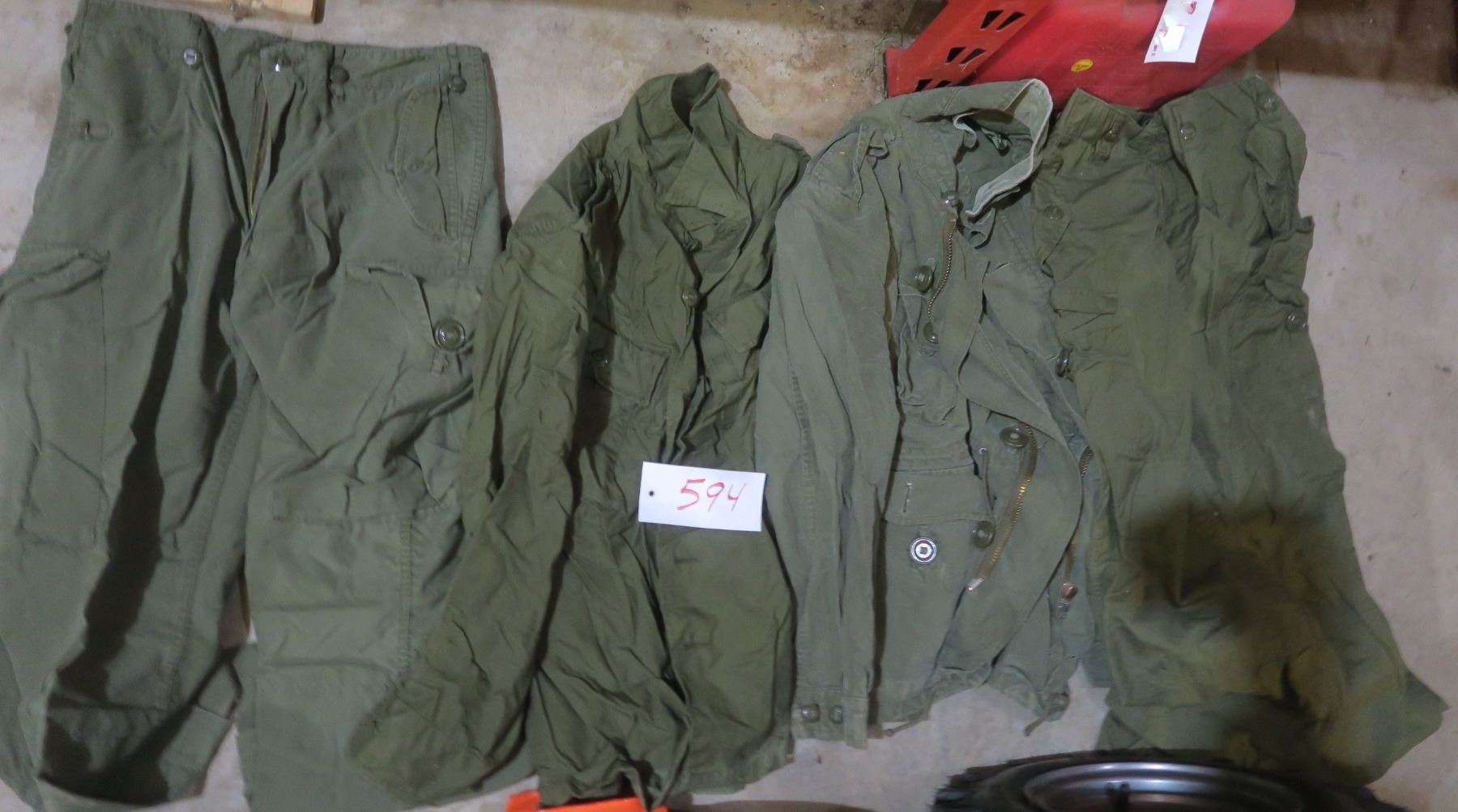 Lot of assorted military pants/shirts/jackets (Shirt/jacket sizes: small-medium, Pants sizes: 27-30 waist)