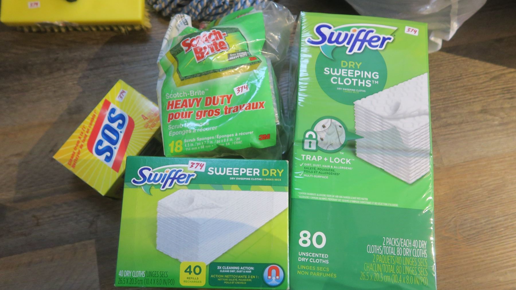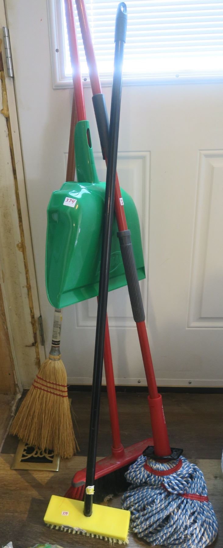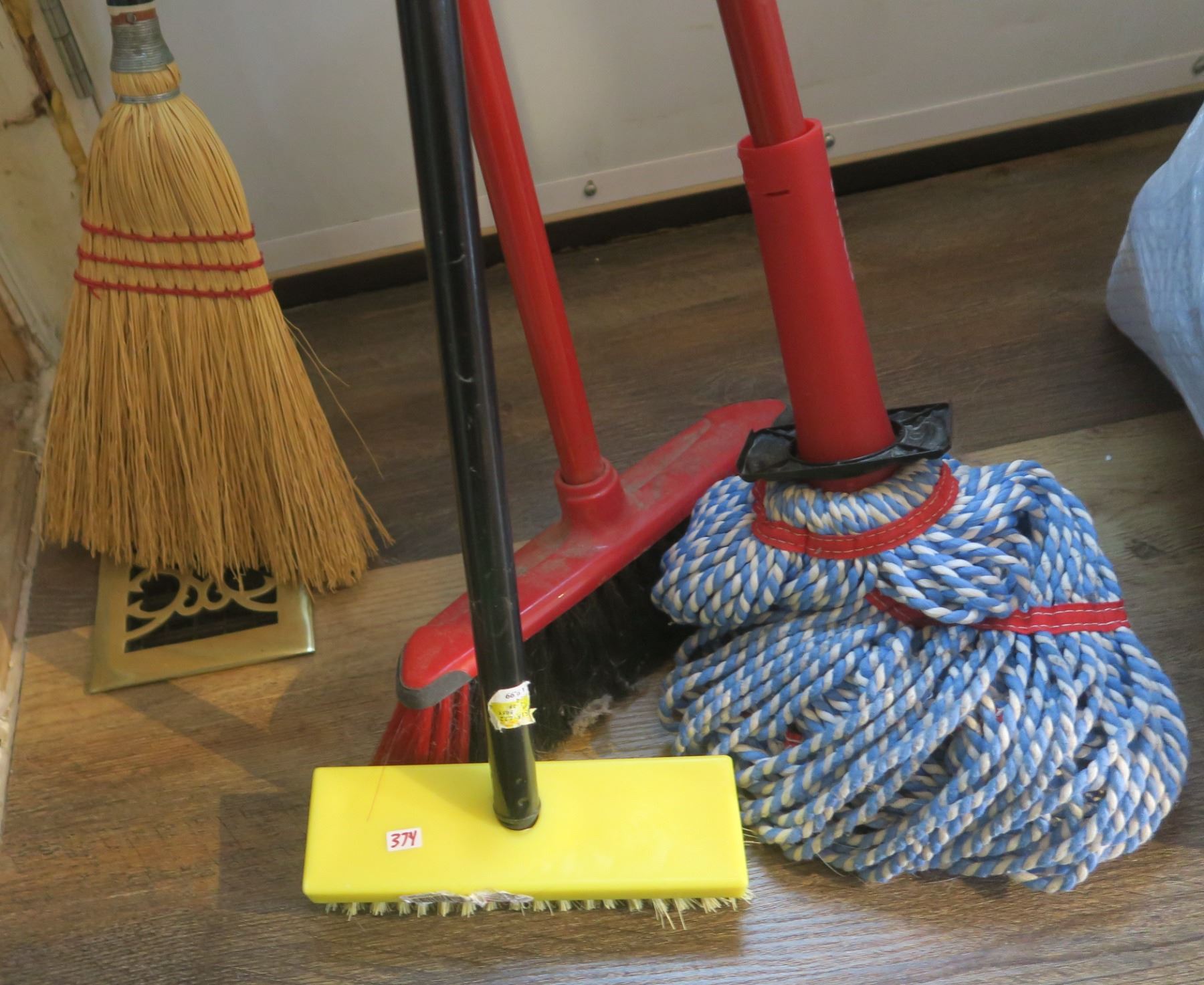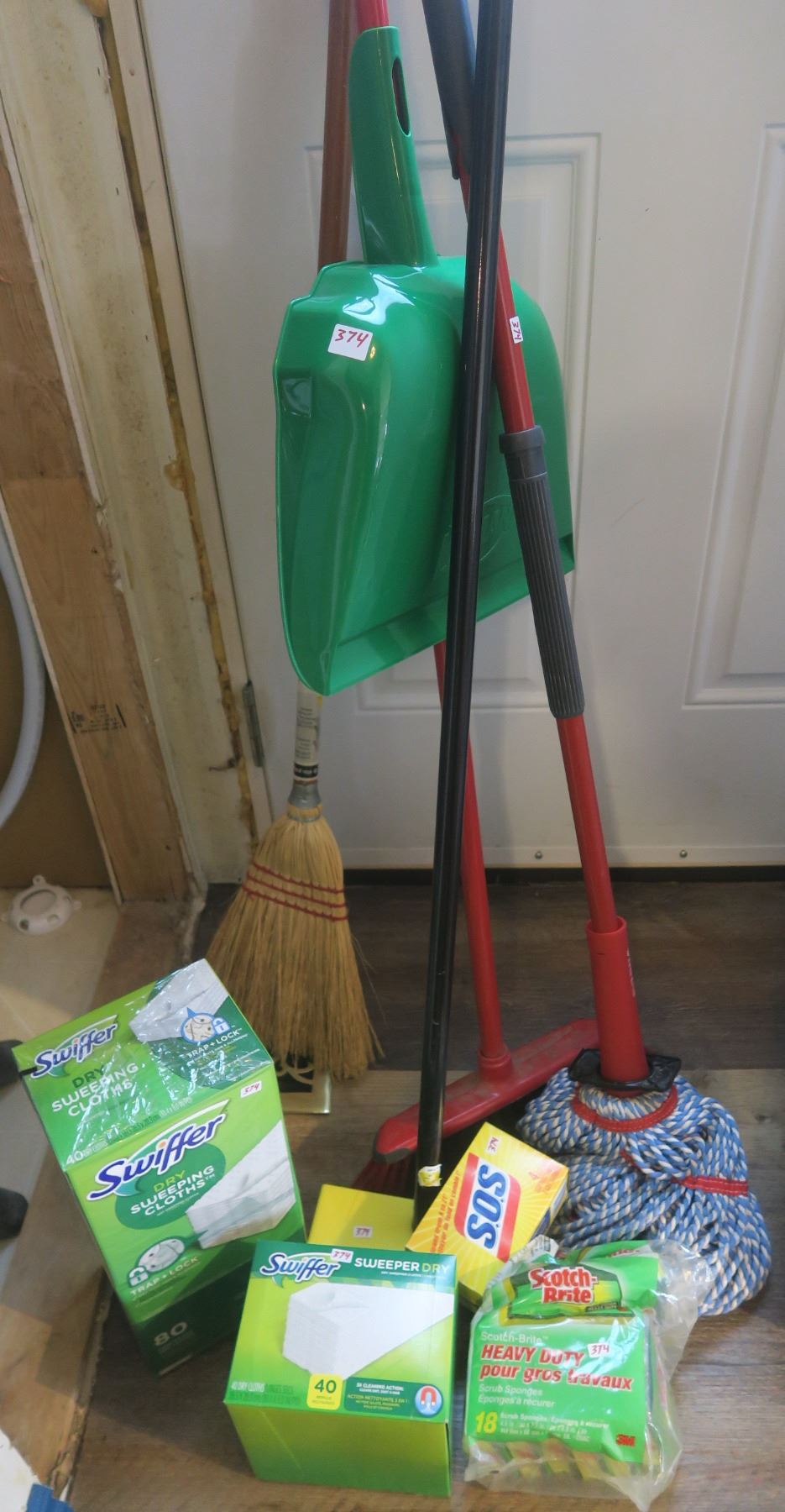 Lot of cleaning supplies (mop bucket/mop/broom/etc.