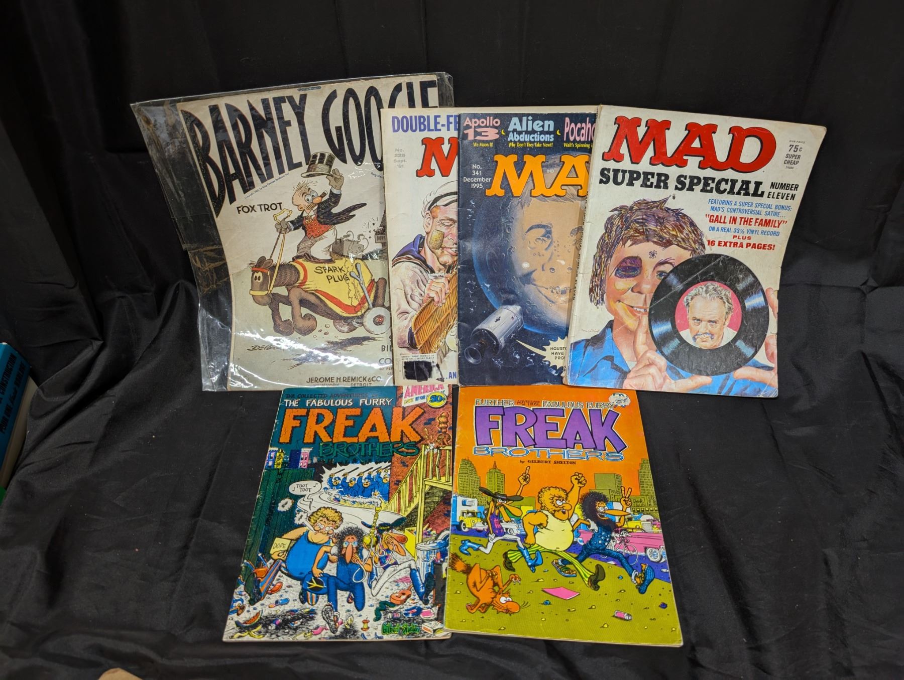 Lot of comics (2) Freaky brothers comics (3) MAD Comics (1) Barney Google Song Paper