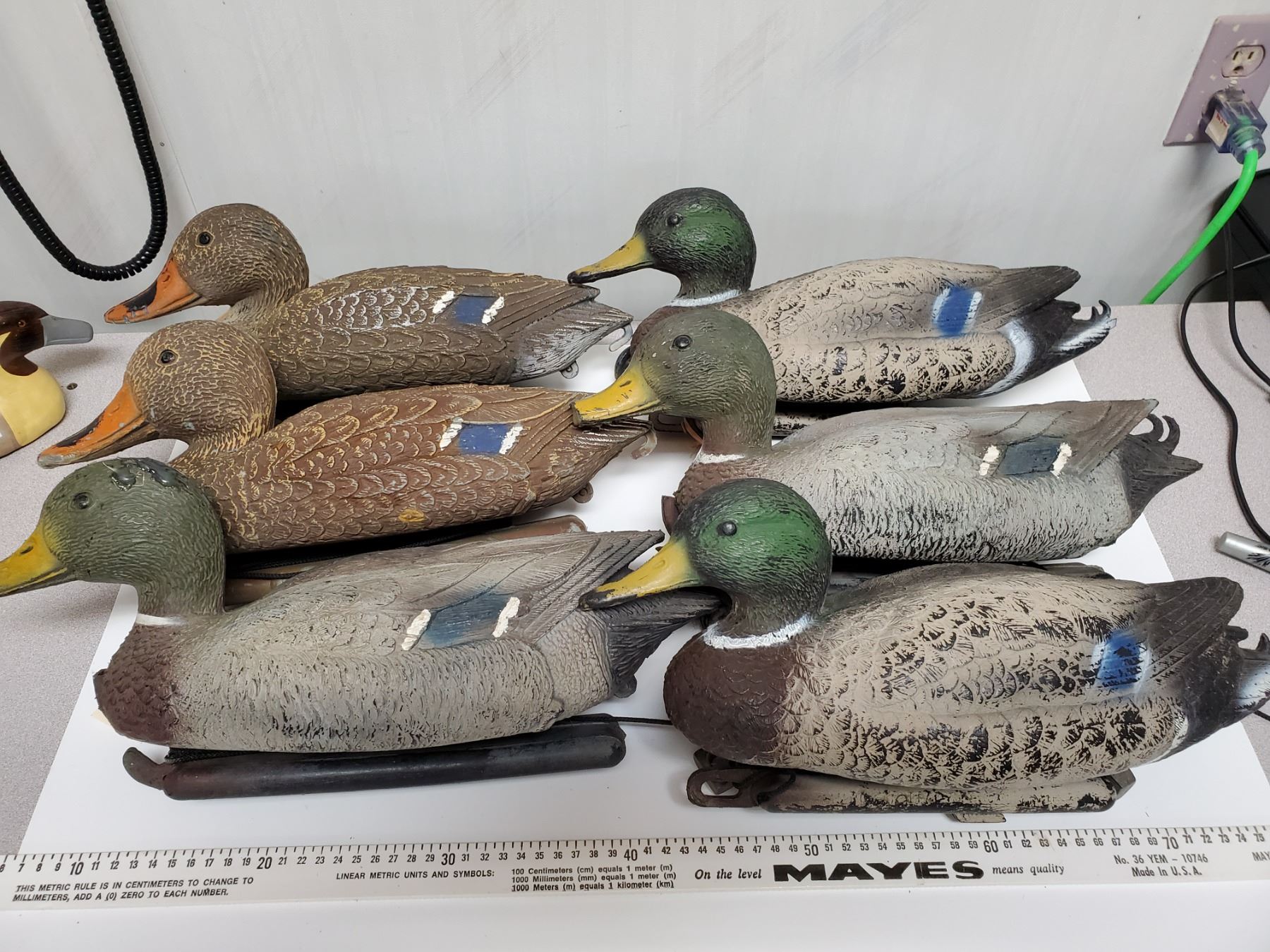 Lot of duck decoys, 4 mallard drakes and 2 hens, made in Italy