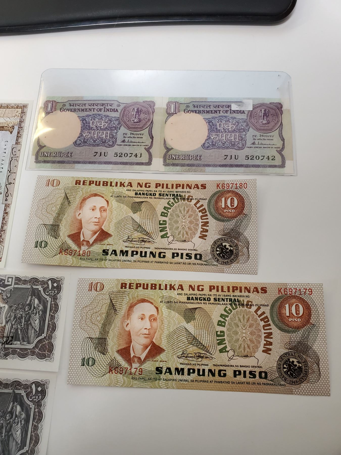 Lot of 2 Philippines 10 Pisos Pesos ND 1974 P 161 d (RED) AUNC Sequential Serial K697179 to K697180, 3 Lebanon 1 Livres 1980 P 61 AUNC About UNC Sequential Serial 1618833 to 1618835, 2 Yugoslavia 10 Dinara 1968 P 82 AUNC Sequential Serial AA7797996 to AA 7797997, 2 India 1 Rupee 1989 P78A/d UNC with holes Sequential Serial 520741 to 520742, Lot of 2 Egypt 10 PIASTRES P 184 a Salah UNC sequential Serial 209636 to 209637