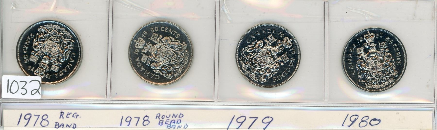 Lot of four (4) Canadian 50¢ fifty cent pieces - 1978 Reg, 1978 round, 1979, 1980