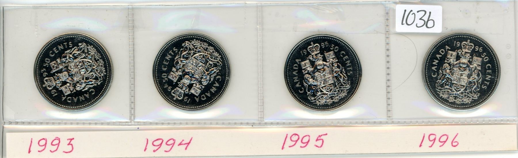 Lot of four (4) Canadian 50¢ fifty cent pieces - 1993, 1994, 1995, 1996