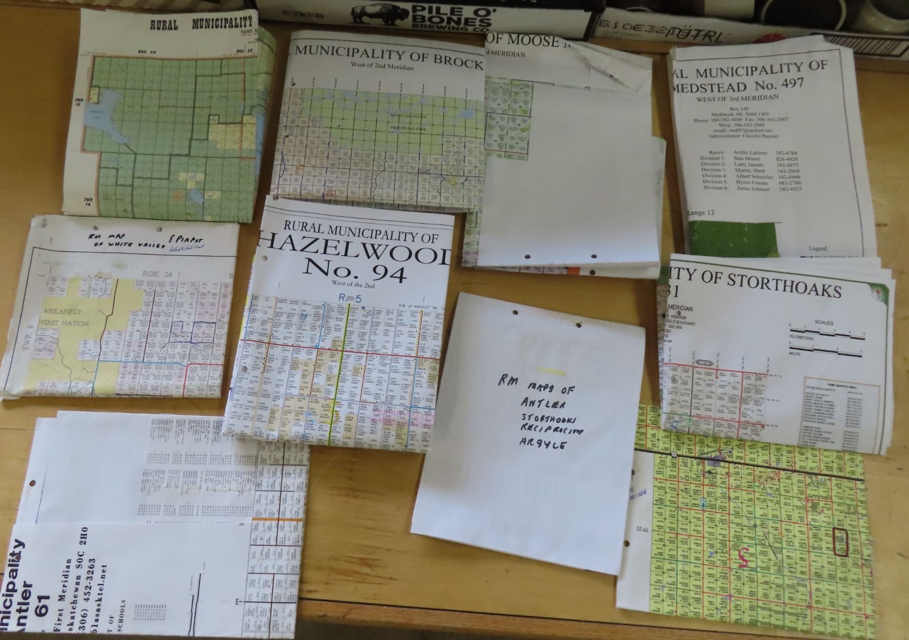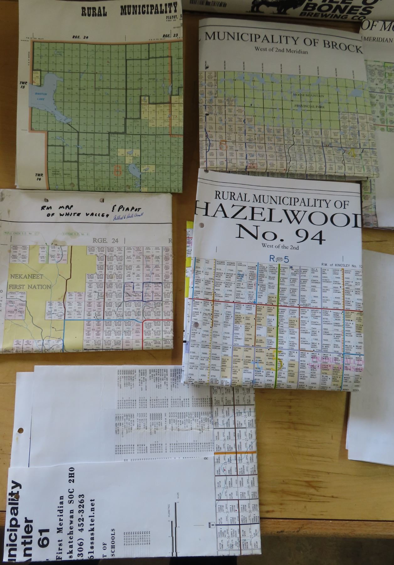 Lot of maps- white valley, brock, moose MTN, hazelwood, antler, storthoaks, reciprocity and arqule