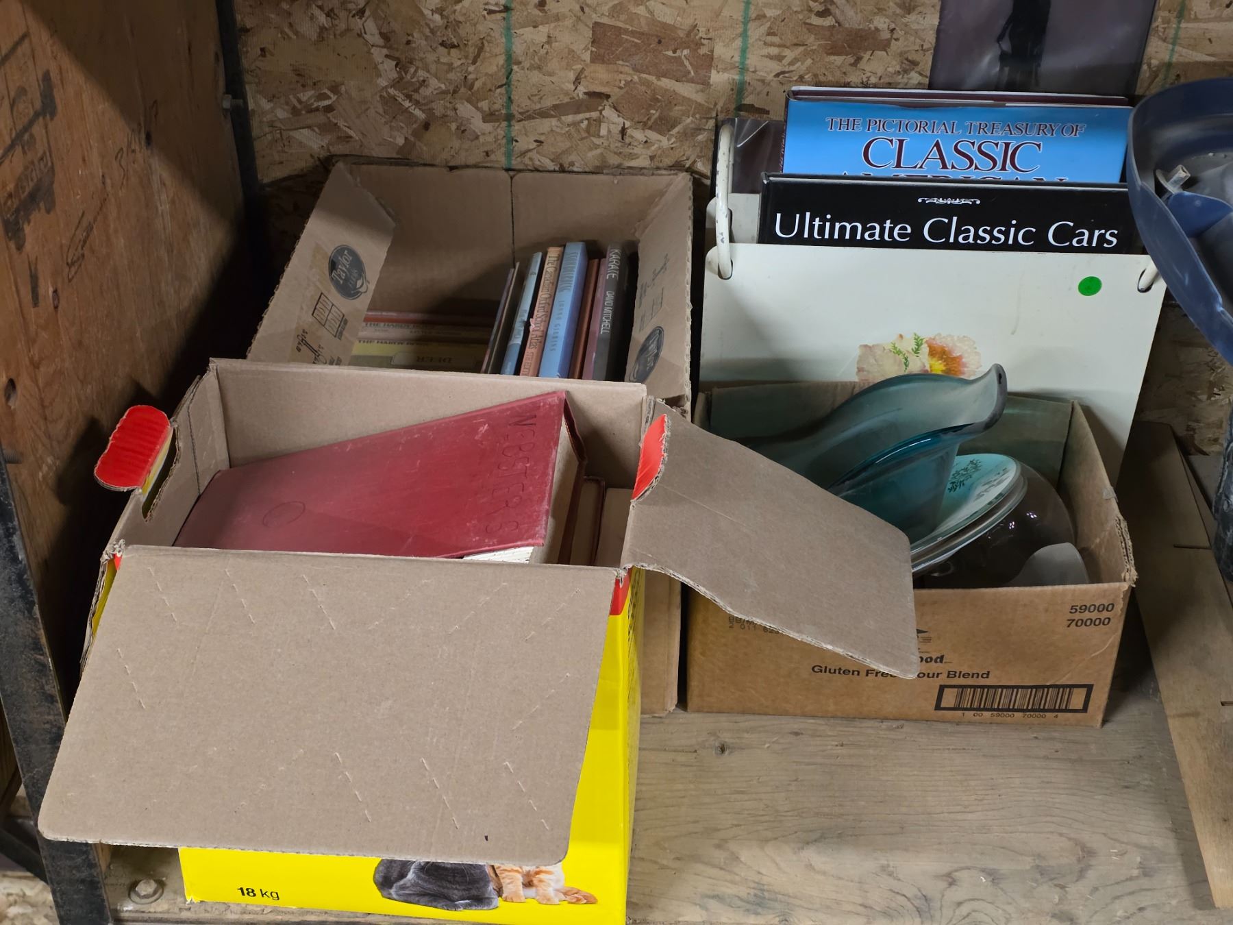 Lot of misc books, glassware and magazine rack