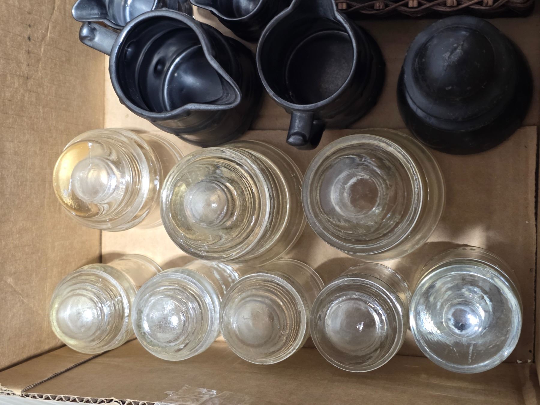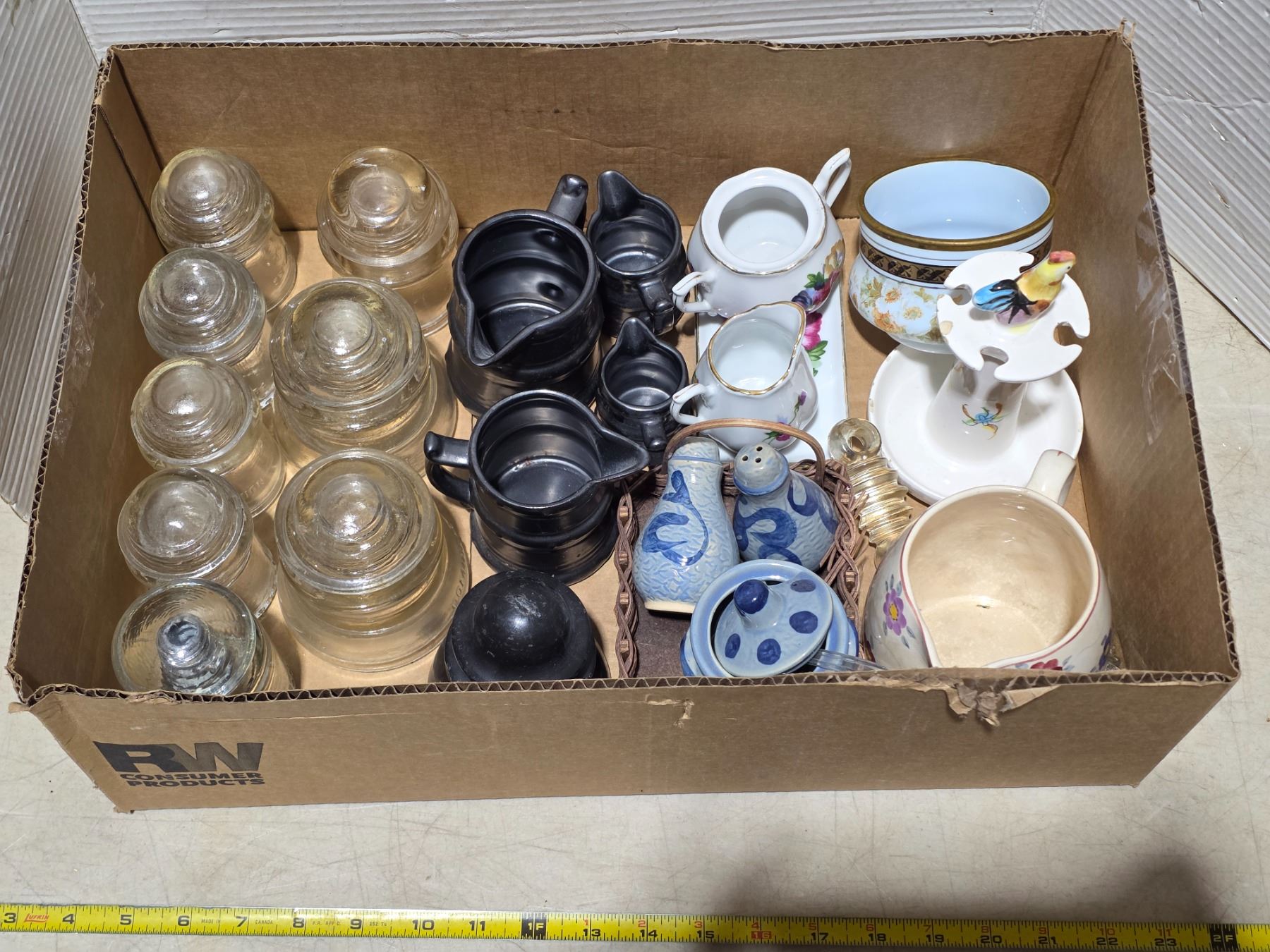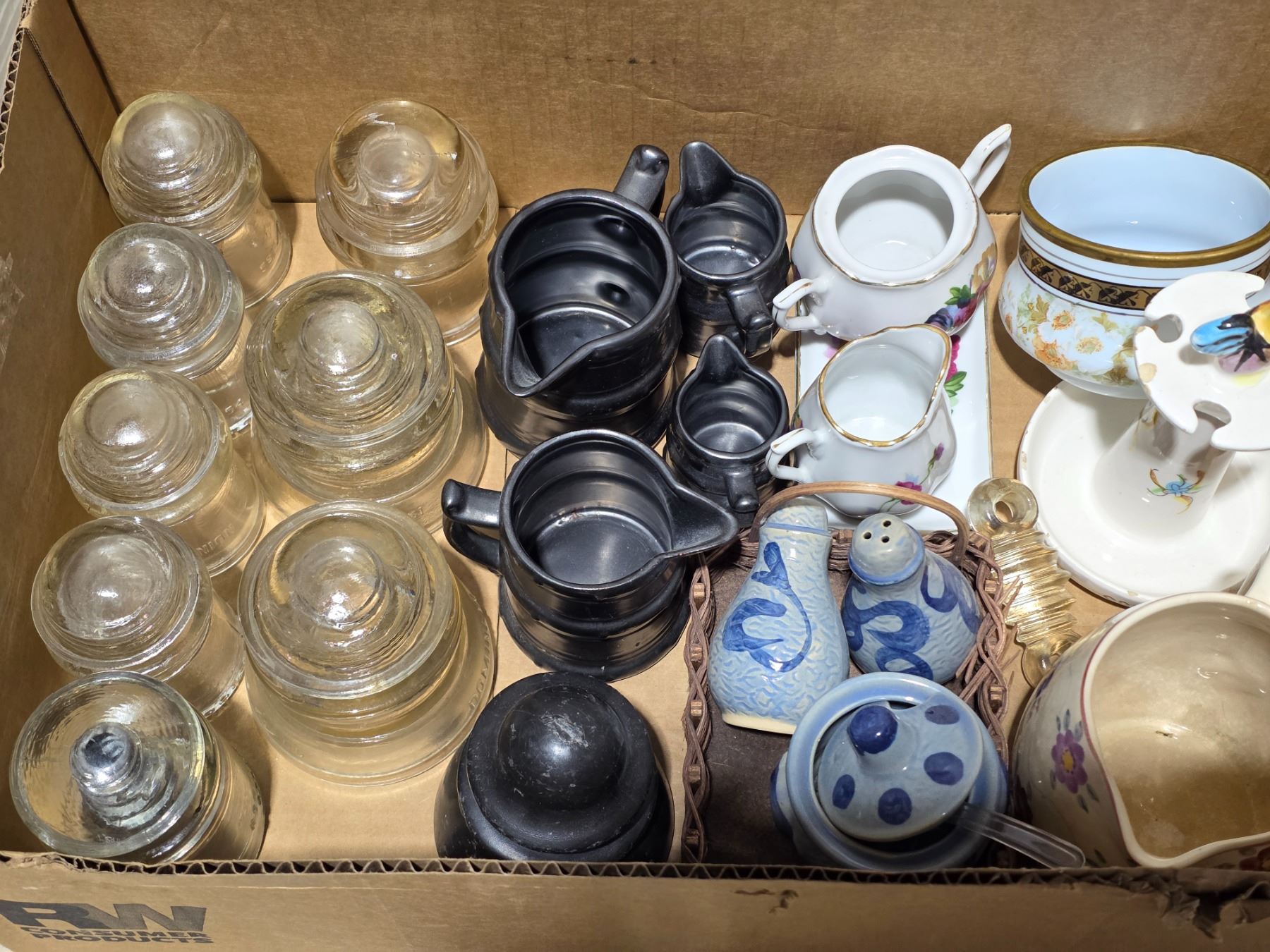 Lot of misc. glassware- insulators, salt and pepper shakers