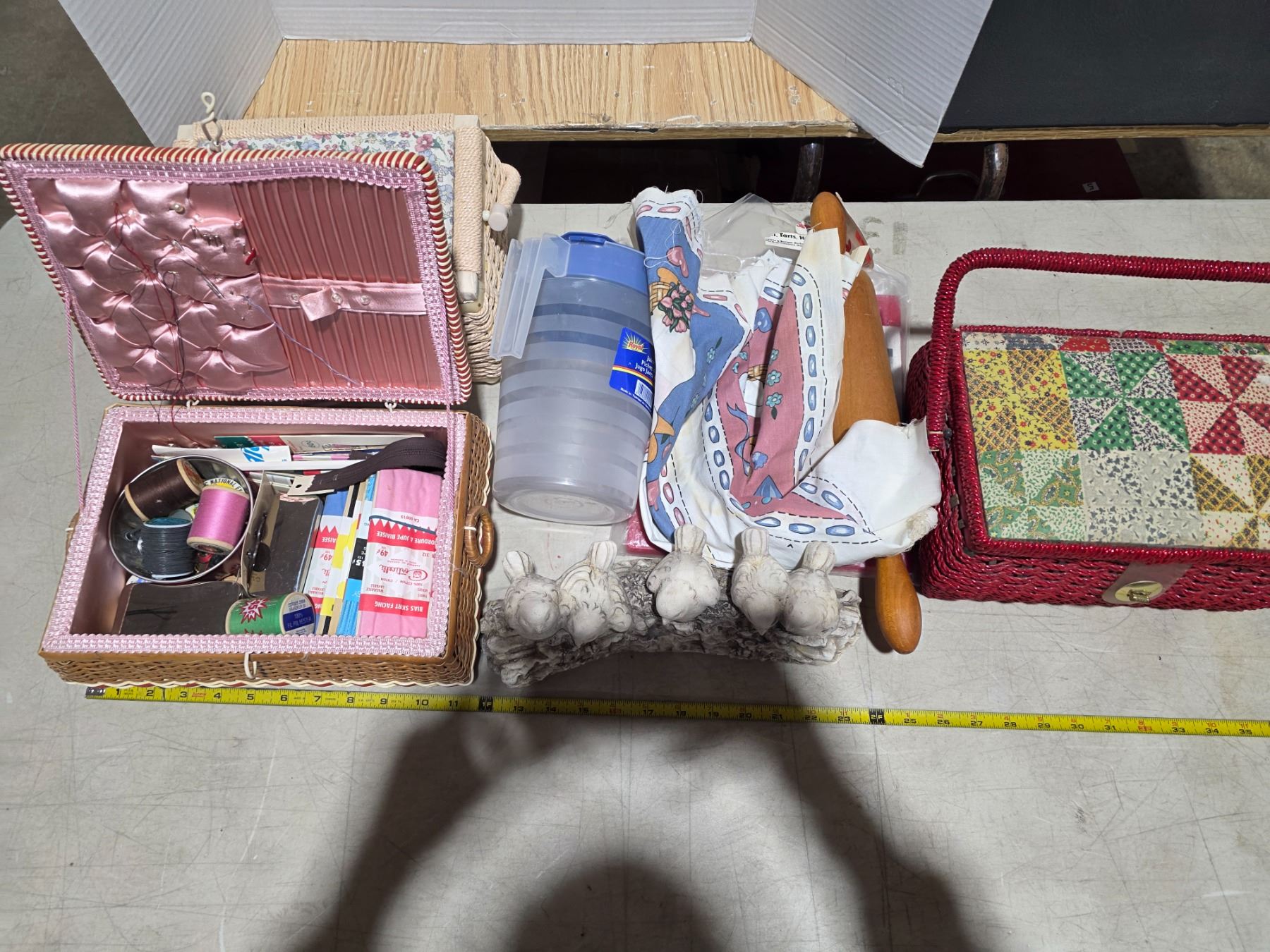 Lot of misc items and sewing boxes with contents