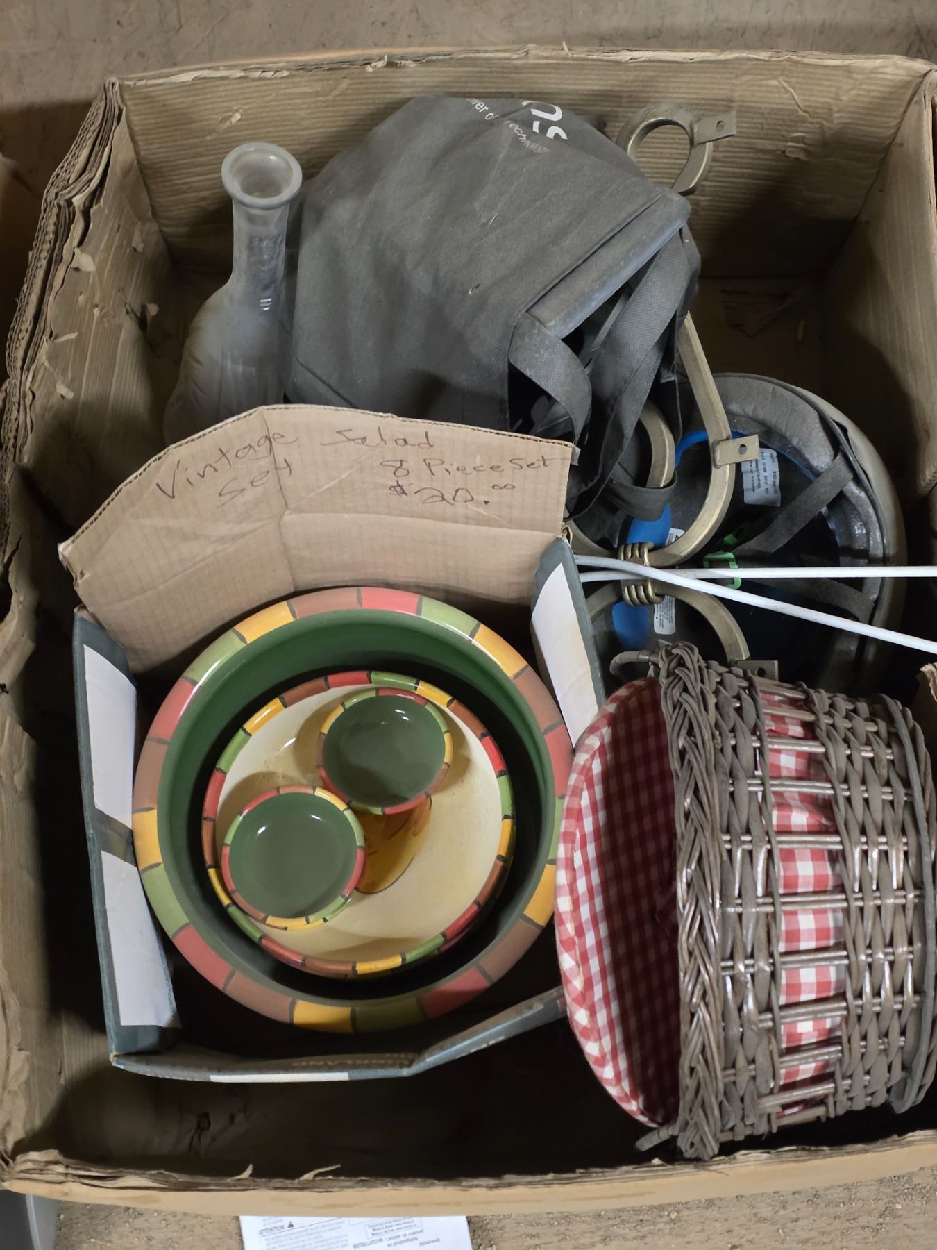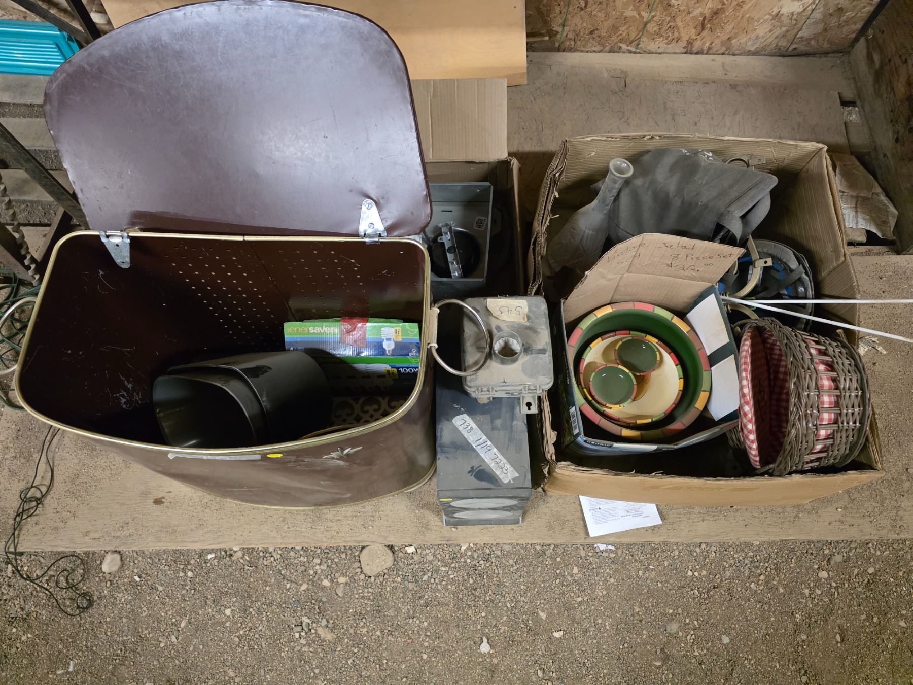 Lot of misc items, hamper, décor and glassware