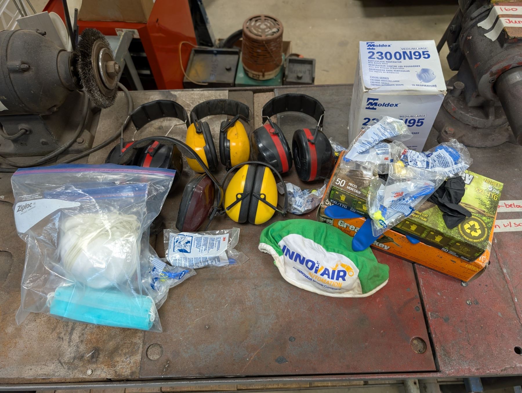 Lot of protection Equipment (Headphone covers, Masks, Glasses, an etc.)