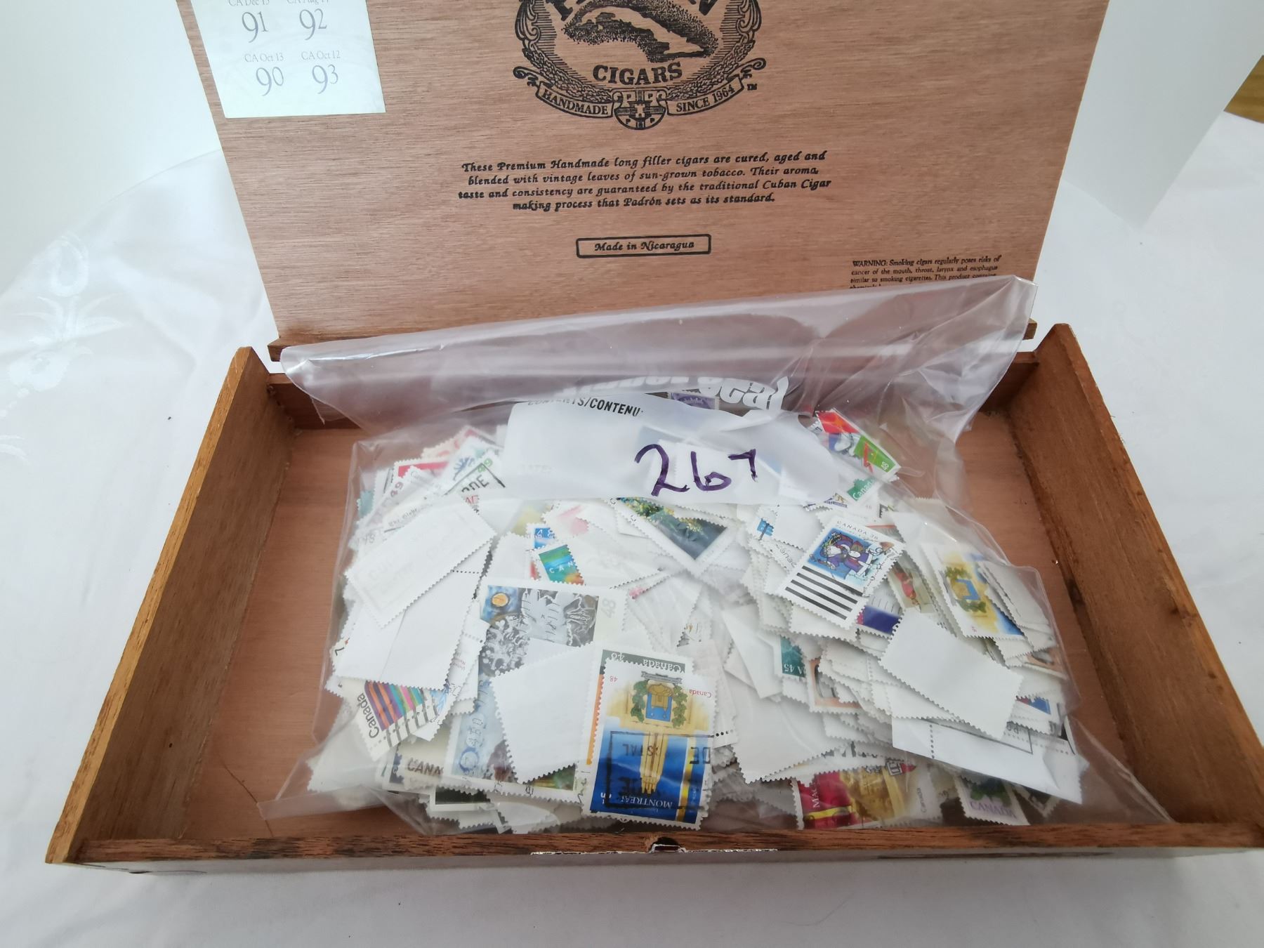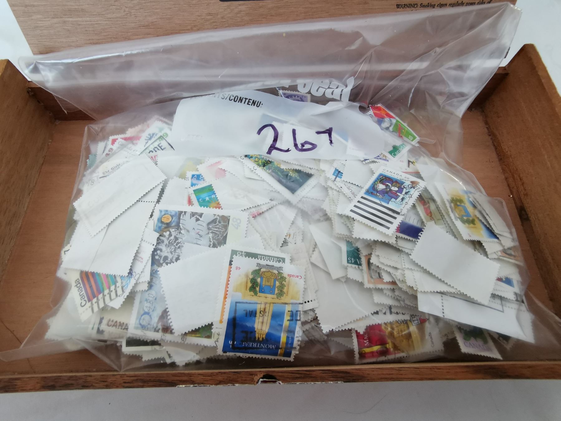 Lot of stamps in a cigar box