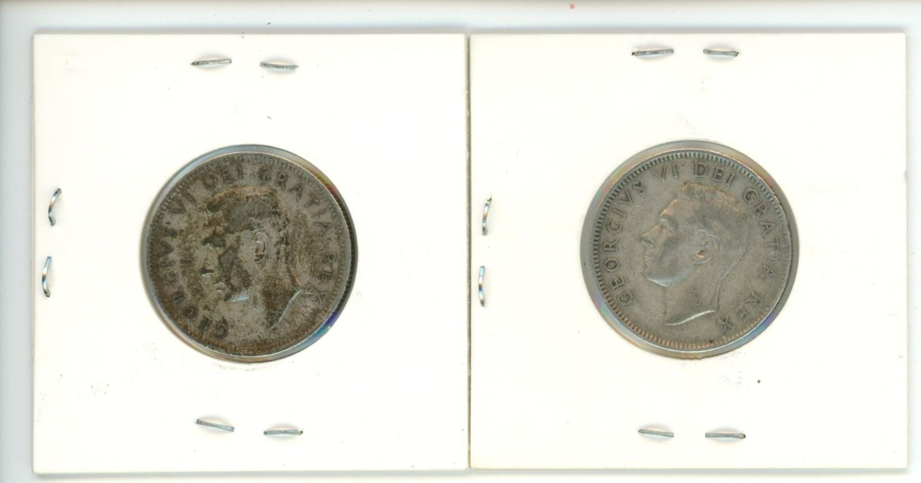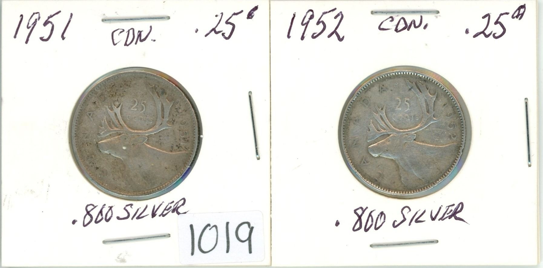 Lot of two 25¢ Canadian quarters 1951 & 1952