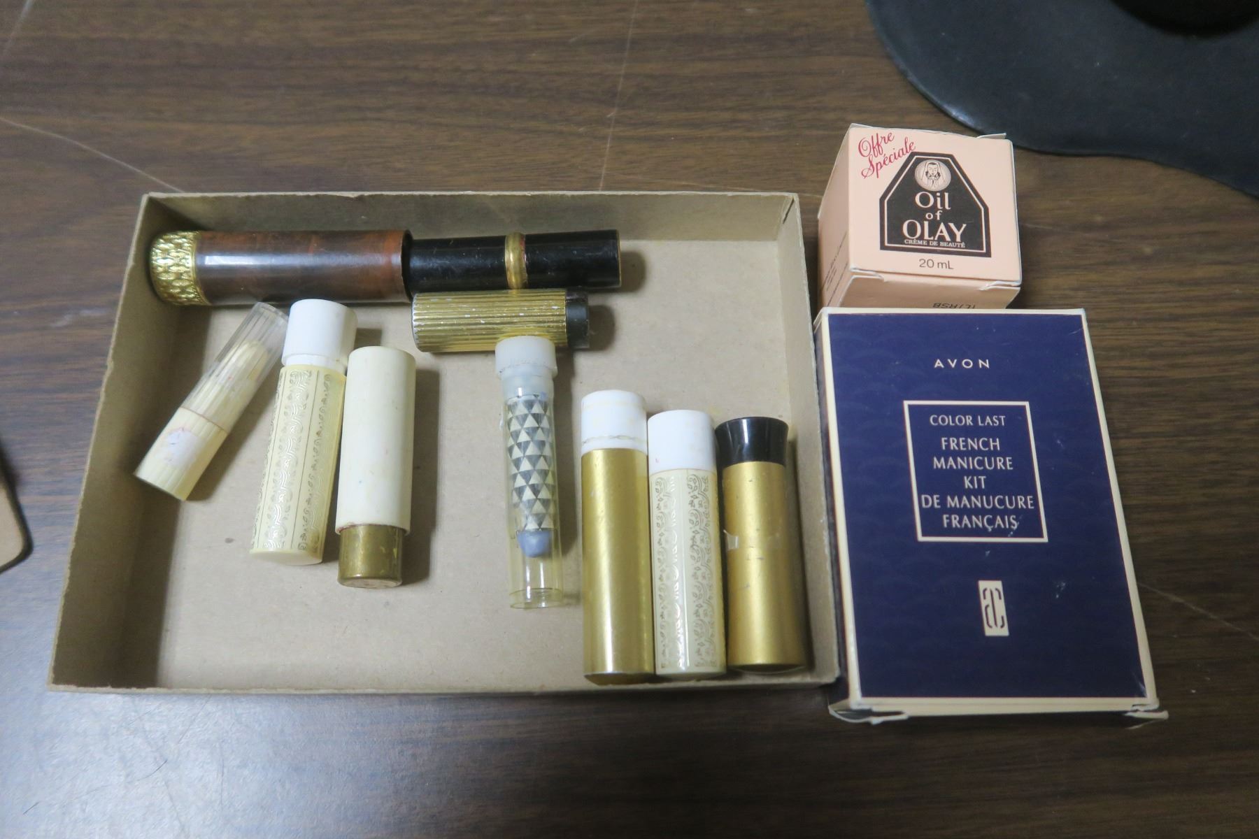 Lot of vintage 1960-70 lipsticks, French manicure set, Oil of Olay sample