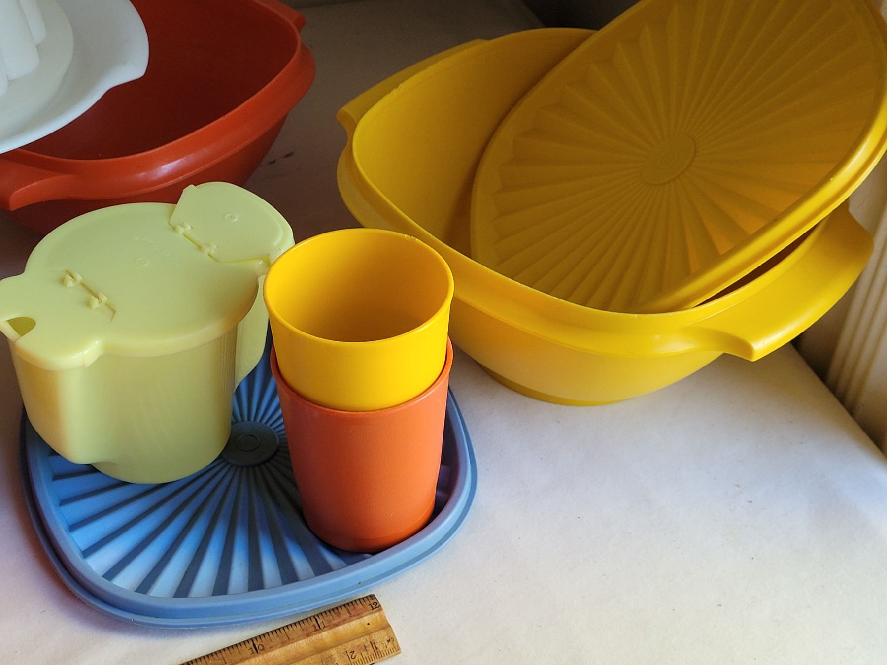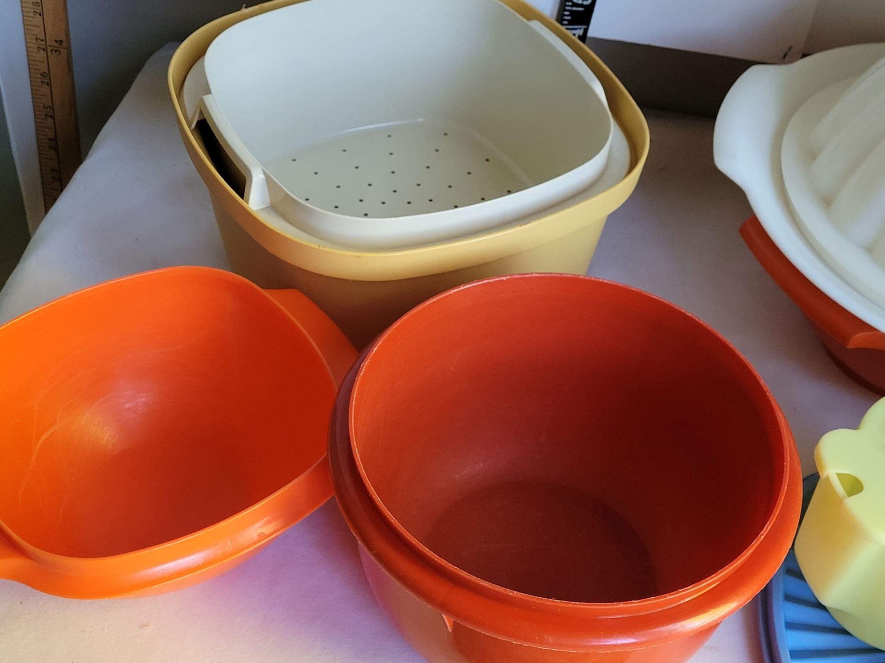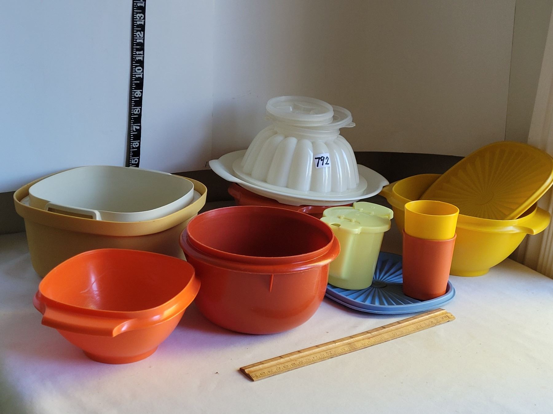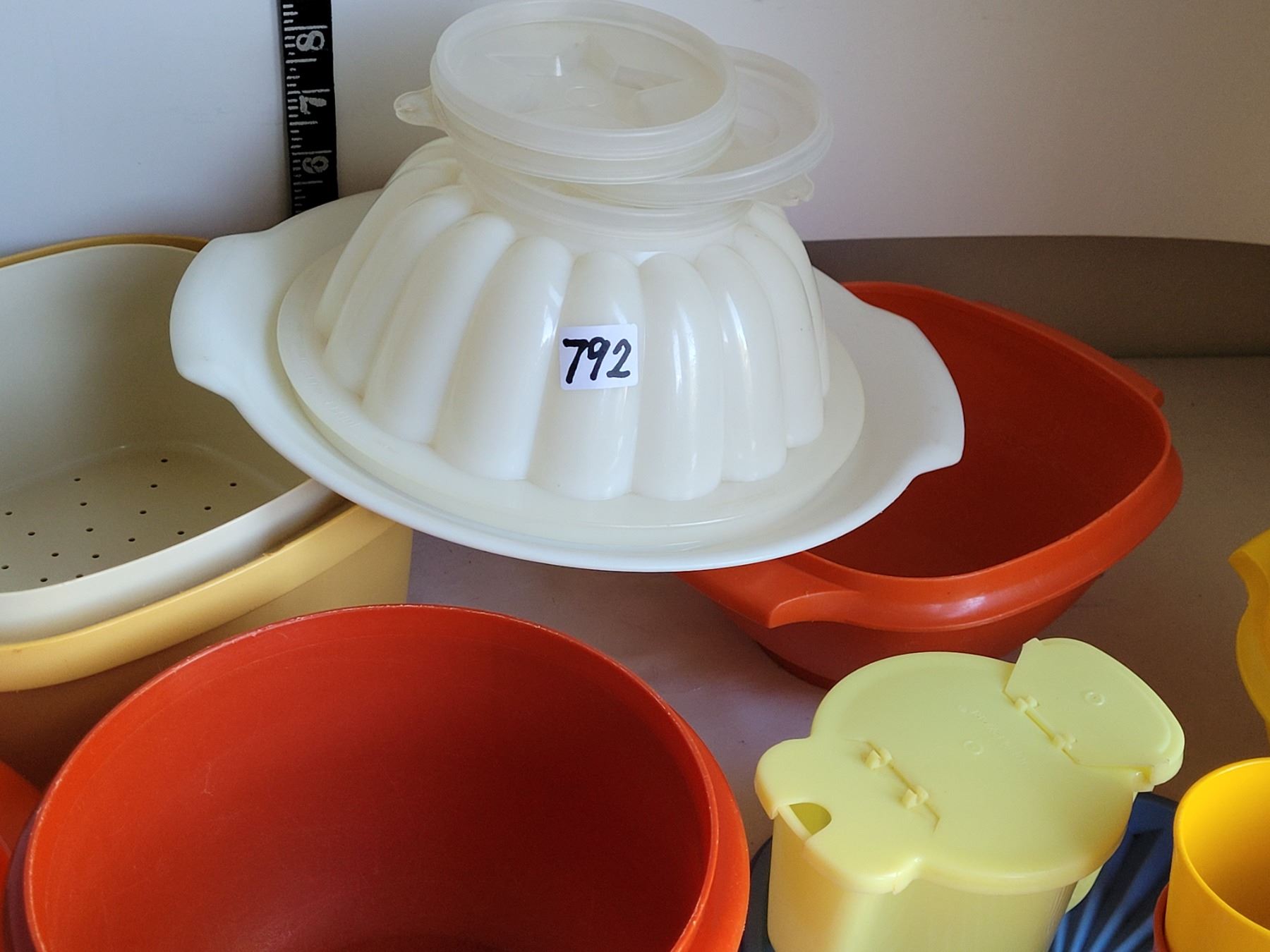 Lot of vintage Tupperware. Bowls, Cups, Jelly Mold, lids .