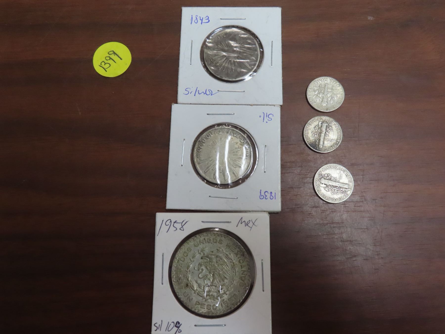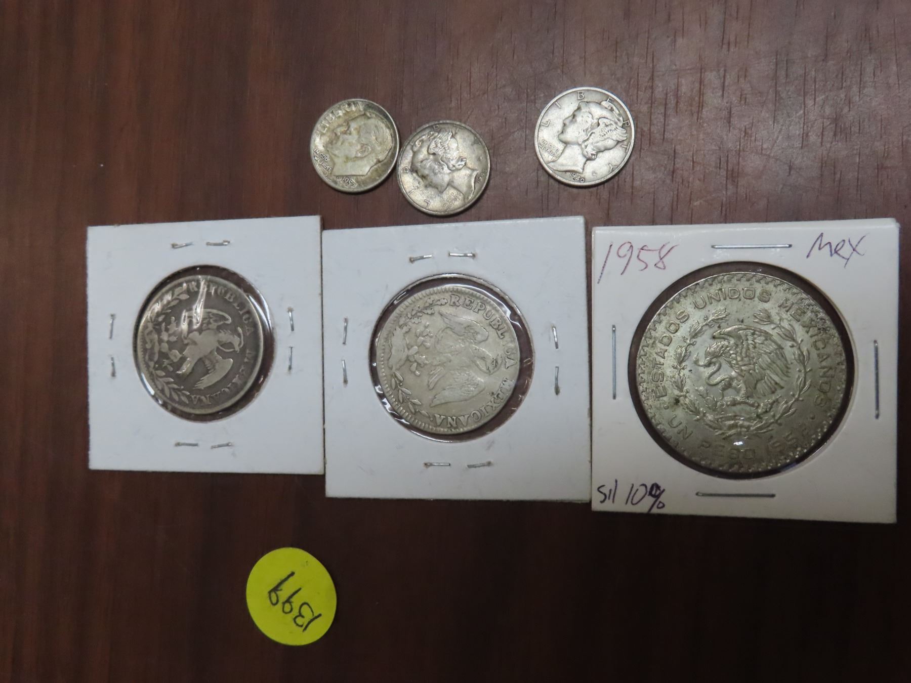 Loto f 3 silver world coins and 3 american silver dimes